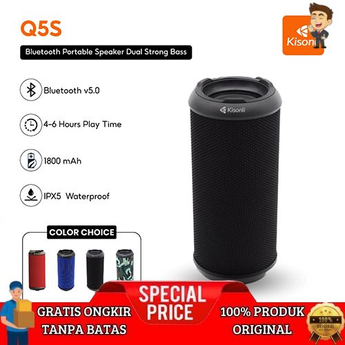[Mall] KISONLI Speaker Bluetooth Portable Q5S Dual Bass Support FM Radio, TF, AUX