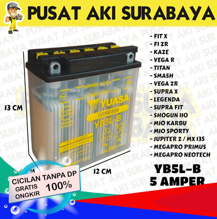 YUASA YB5LB 5 12 VOLT 5 AMPER ACCU MOTOR MIO SPORTY GRAND LEGENDA JUPITER BURHAN MEGAPRO KAZE VEGA TITAN SMASH GT6A MTX5