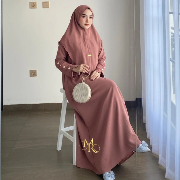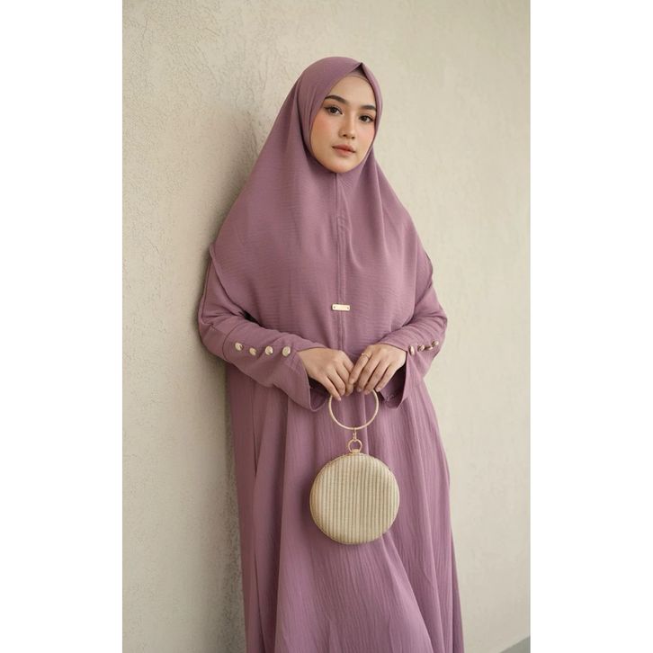 ABAYA FREE HIJAB SETELAN GAMIS UMROH DRESS BATWING OVERSIZE CRINKLE INARA BUTTON - EMRACOLLECT.ID