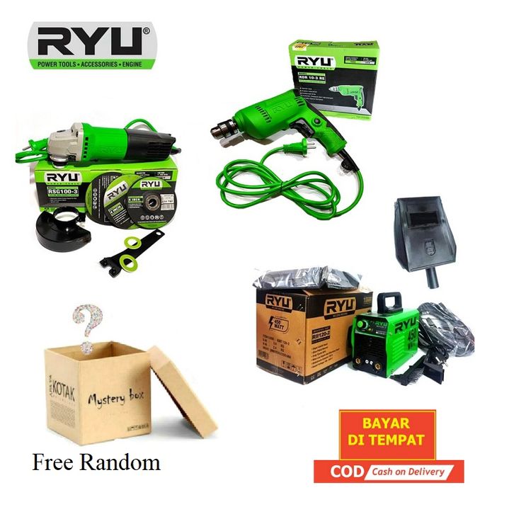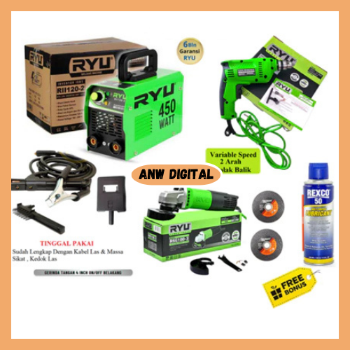 MESIN LAS LISTRIK PAKET HEMAT 3 ITEM RII 120-2 450 WATT MESIN LAS 450 WATT RYU 120A TRAFO TRAVO LAS + MESIN GERINDA 4 IN