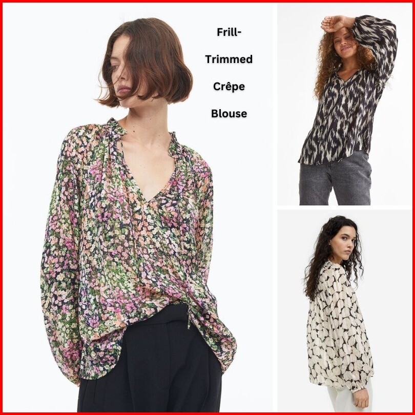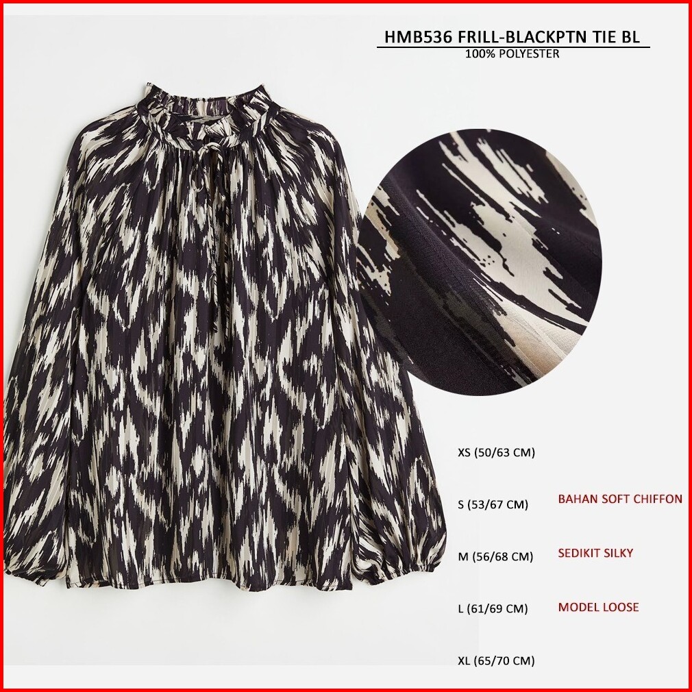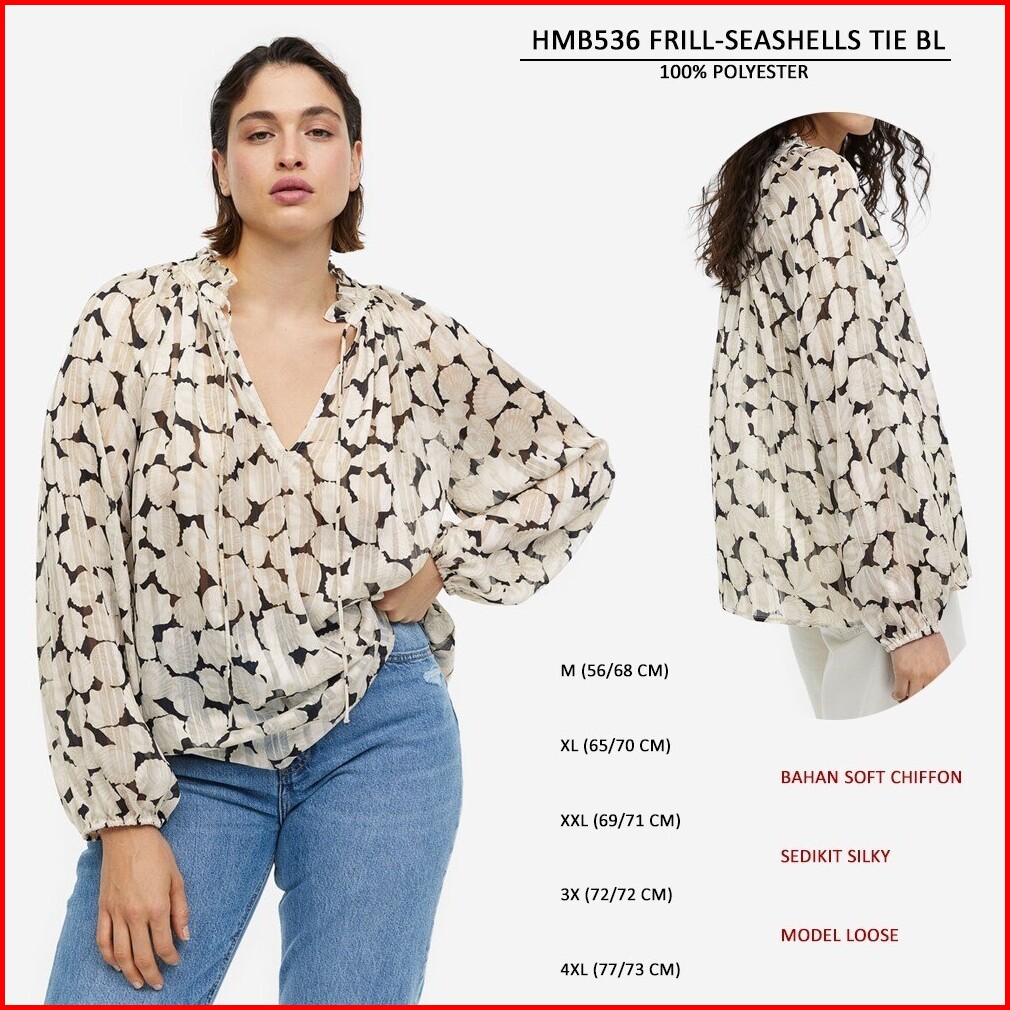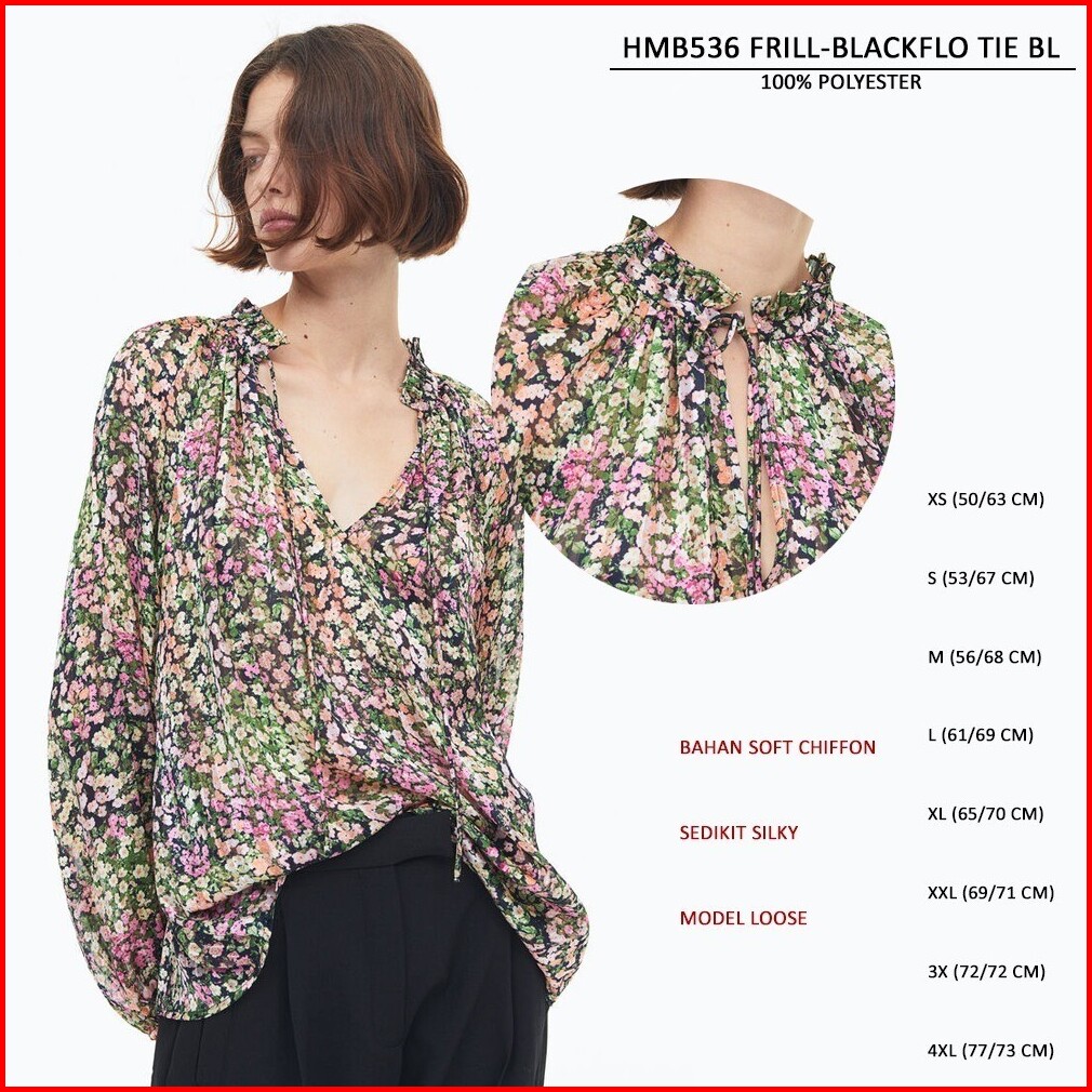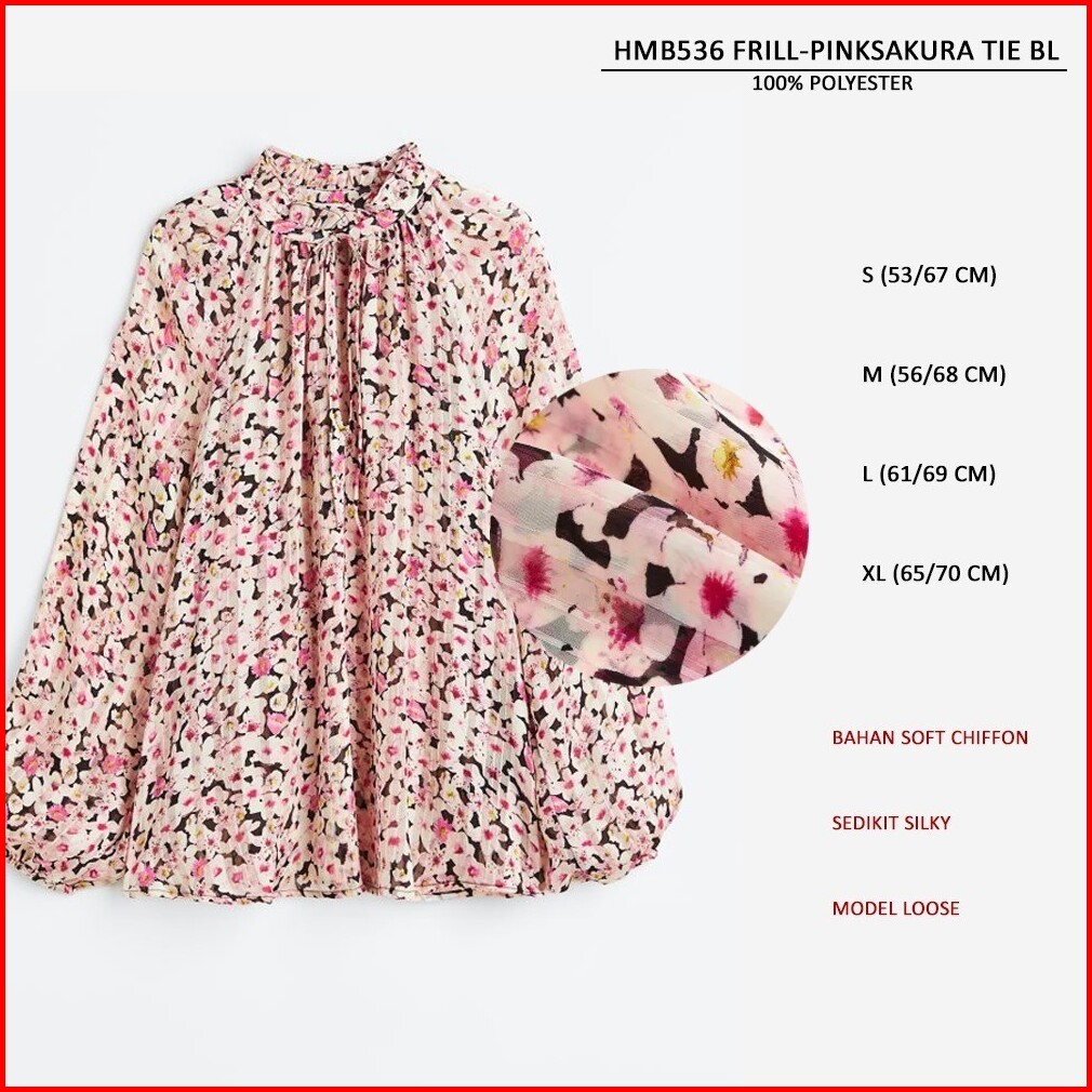 Atasan Blouse Wanita Lengan Panjang Soft Chiffon Hmb536 Frill Tie Blouse