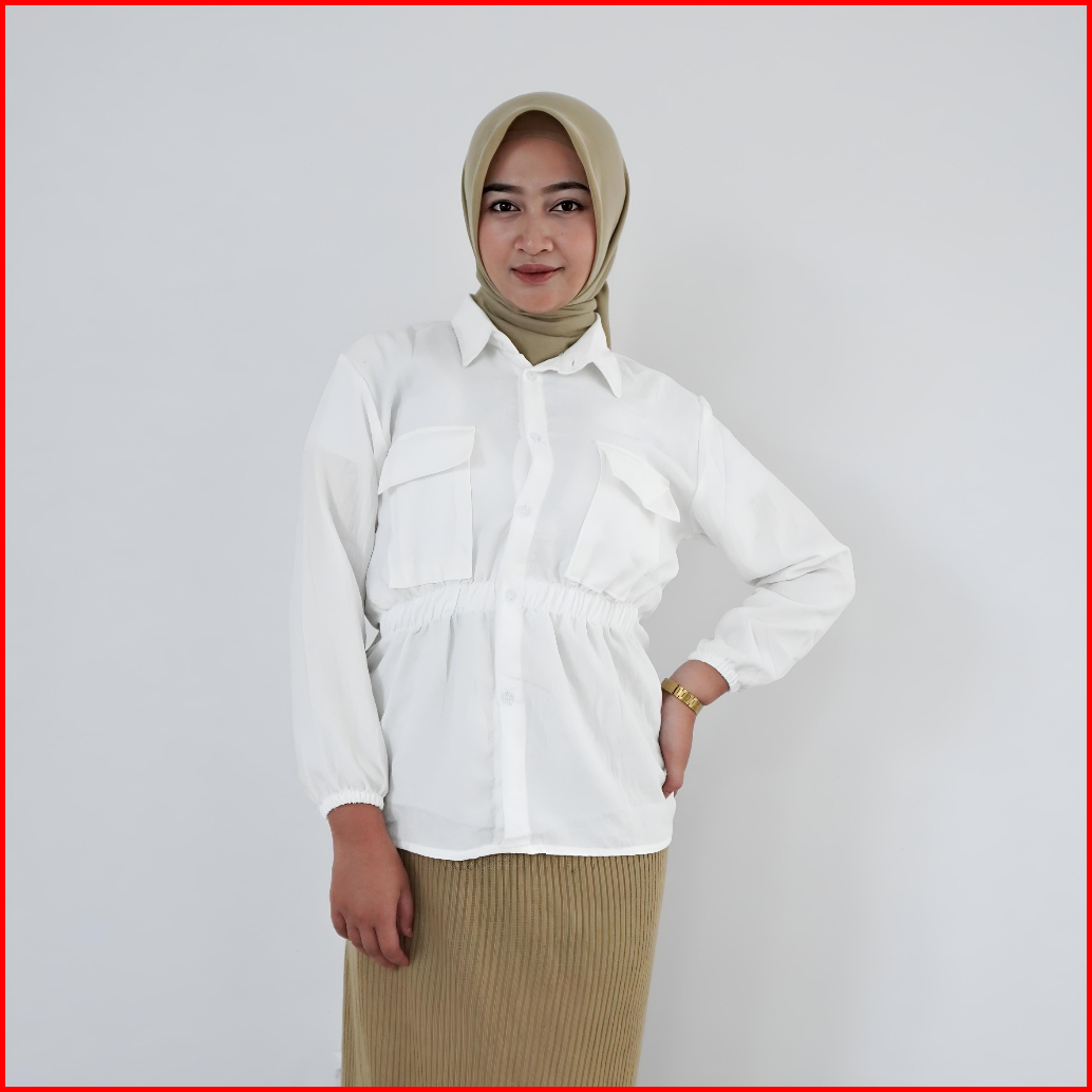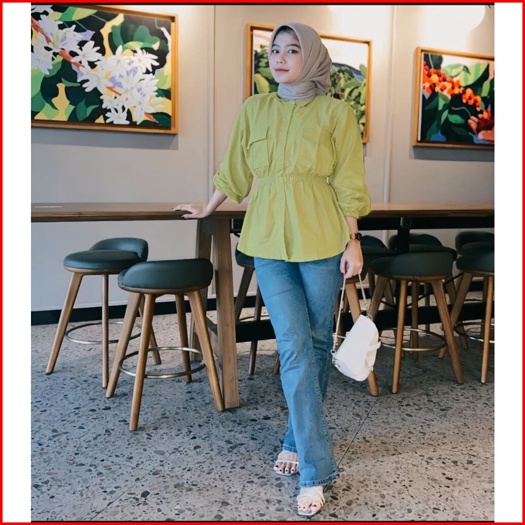 Rina Blouse Wanita Korea Variasi Kerut Depan Kekinian Kemeja Polos Wanita Casual Daily