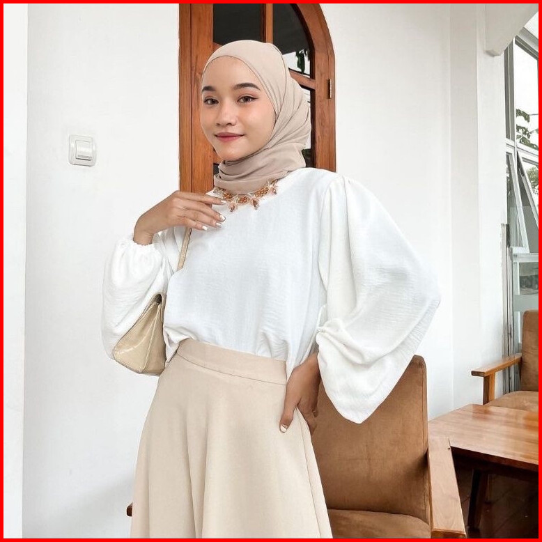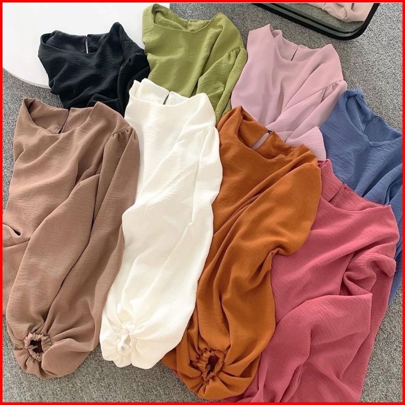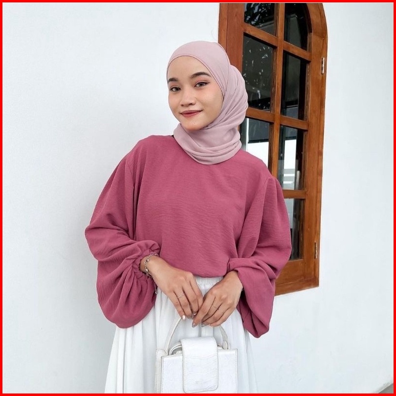 Blouse Wanita Oversize Lengan Balon Crinkle Mika