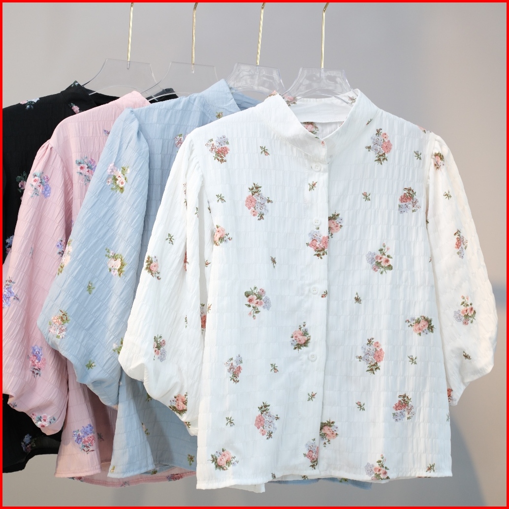 Blouse Bunga Lengan Balon Blouse Wanita Bunga Model Bangkok Style