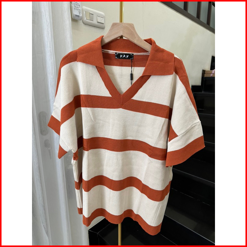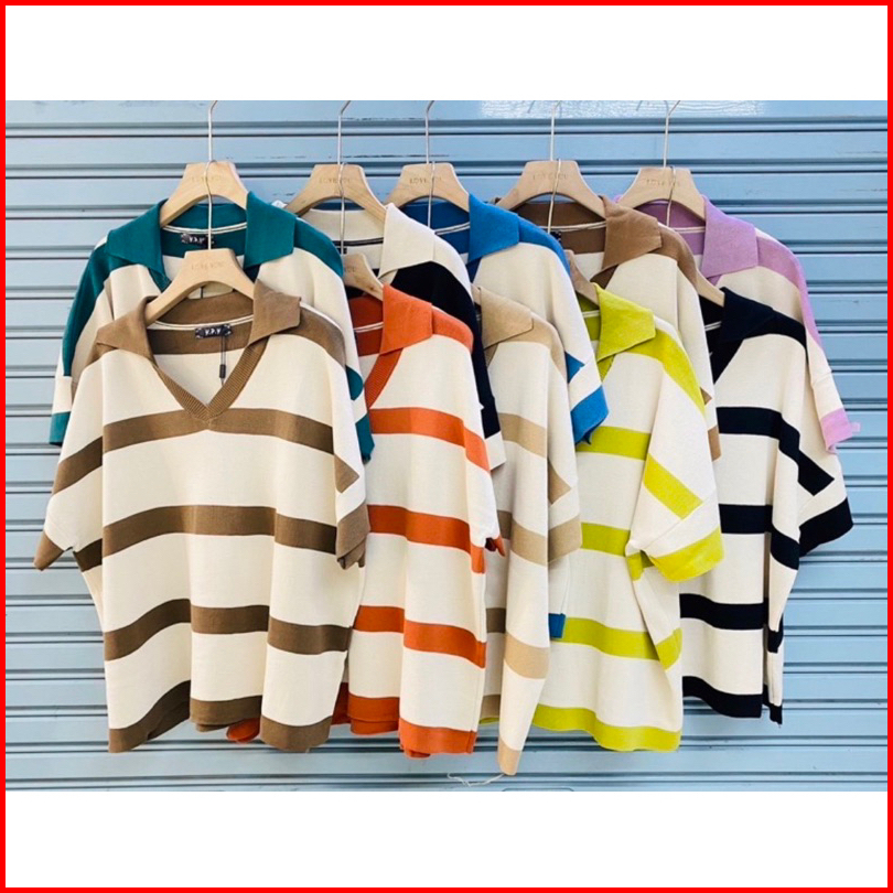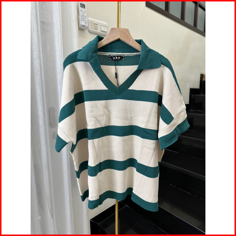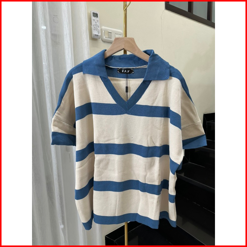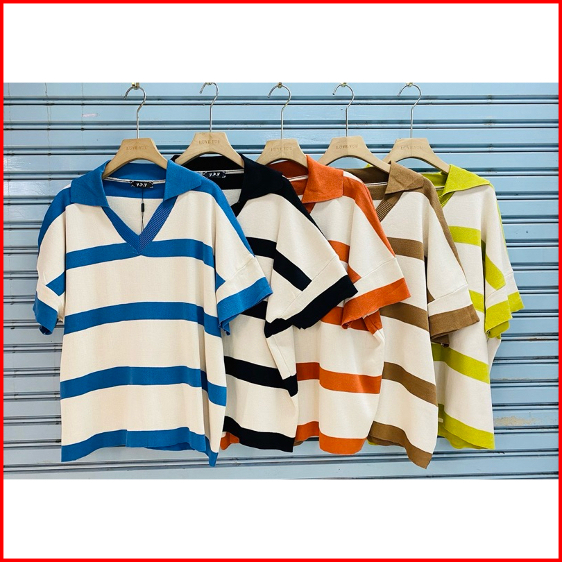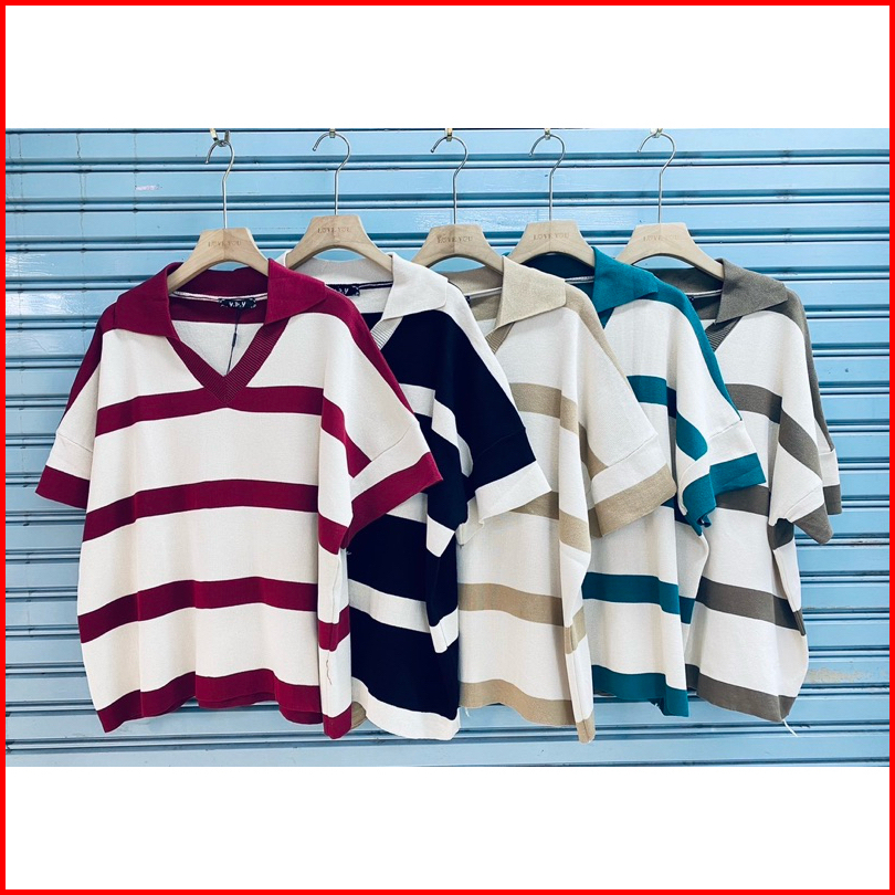 Readystock Yypy-03 Collar Stripe Atasan Oversize Big Size Knit Top Ypy Bangkok