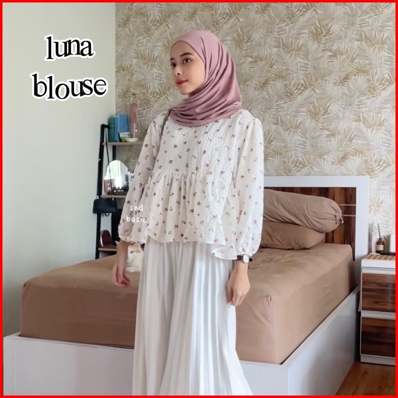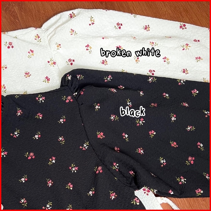 Luna Blouse Blus Katun Crinkle Motif Bunga Vintage Korean Style