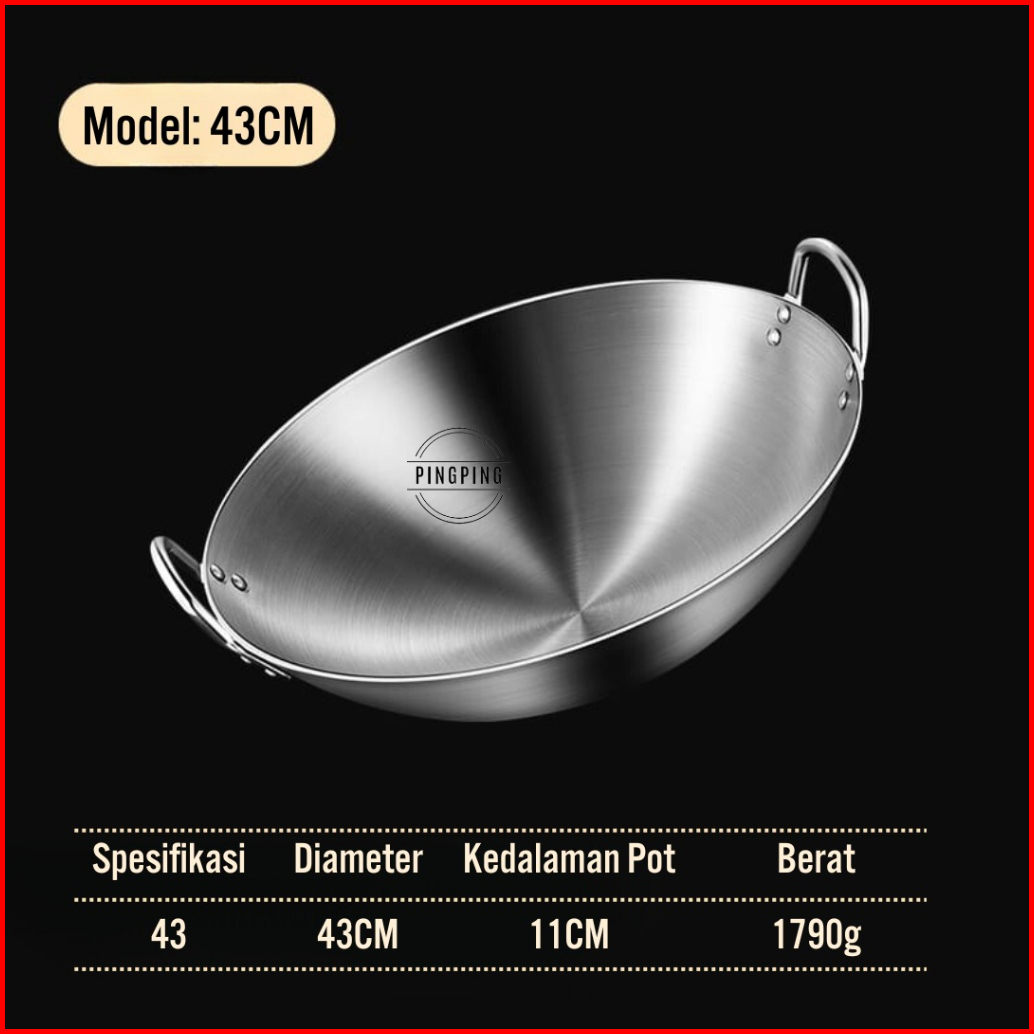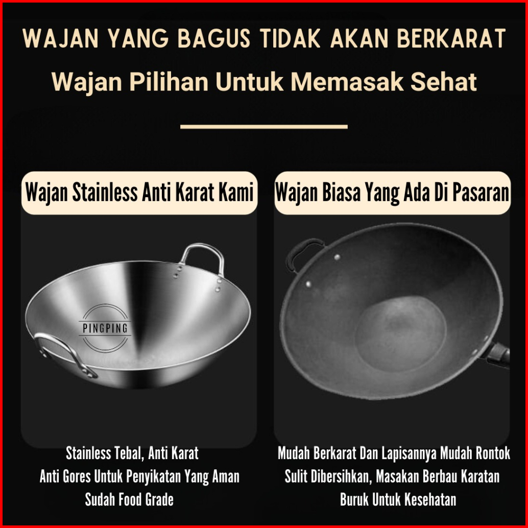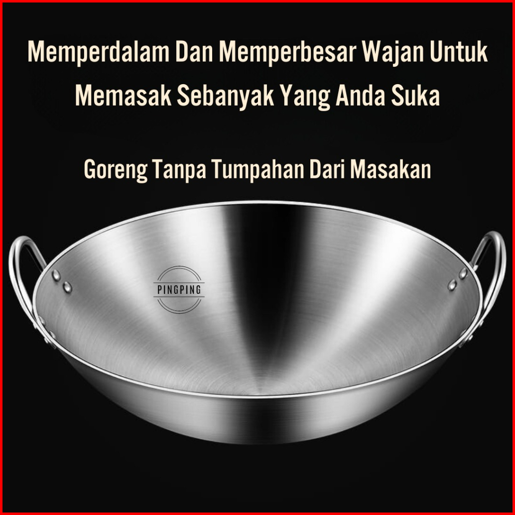 Wajan Penggorengan Tebal Full Stainless Steel Sus 304 Wajan Penggorengan Anti Leket Kenceng Penggorengan Sus 304 Wajan P