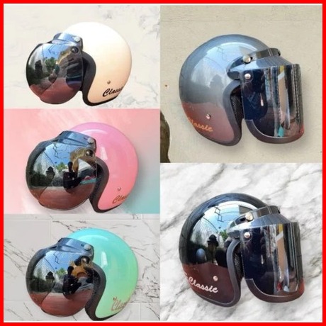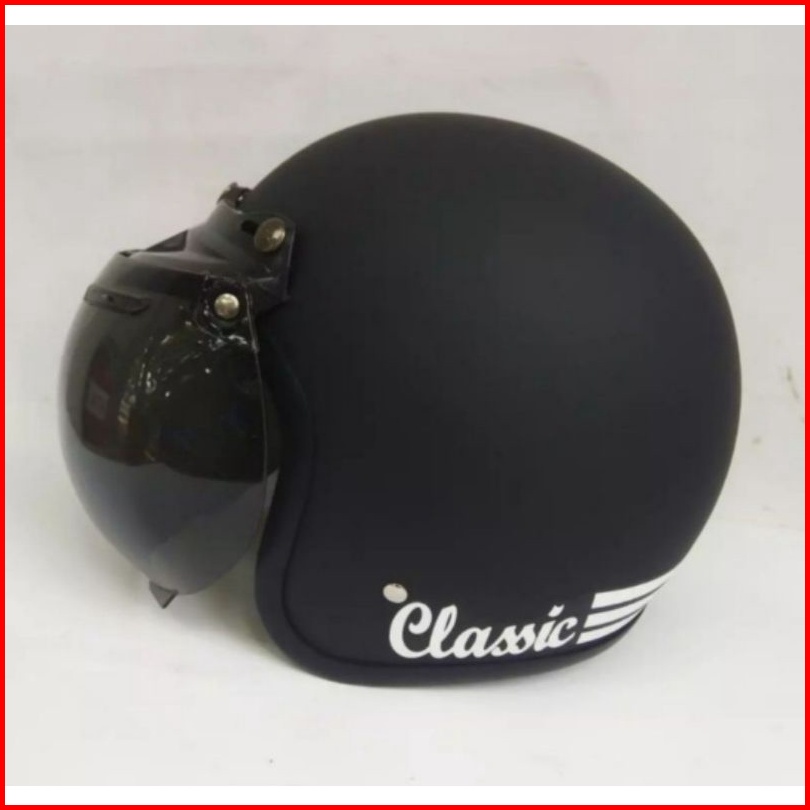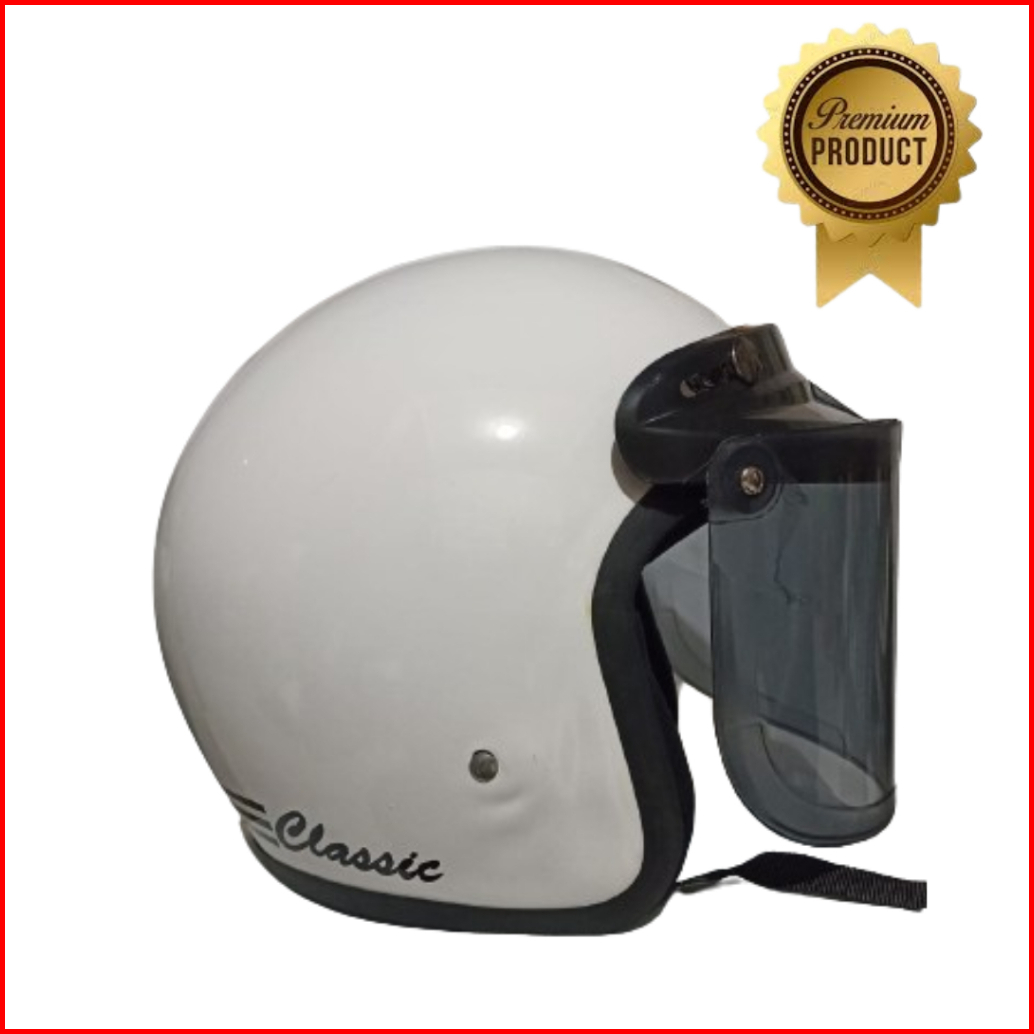 Helm Bogo Dewasa Classic Premium Garis Tiga Full Leher Kaca Cembung Kaca Datar Sni