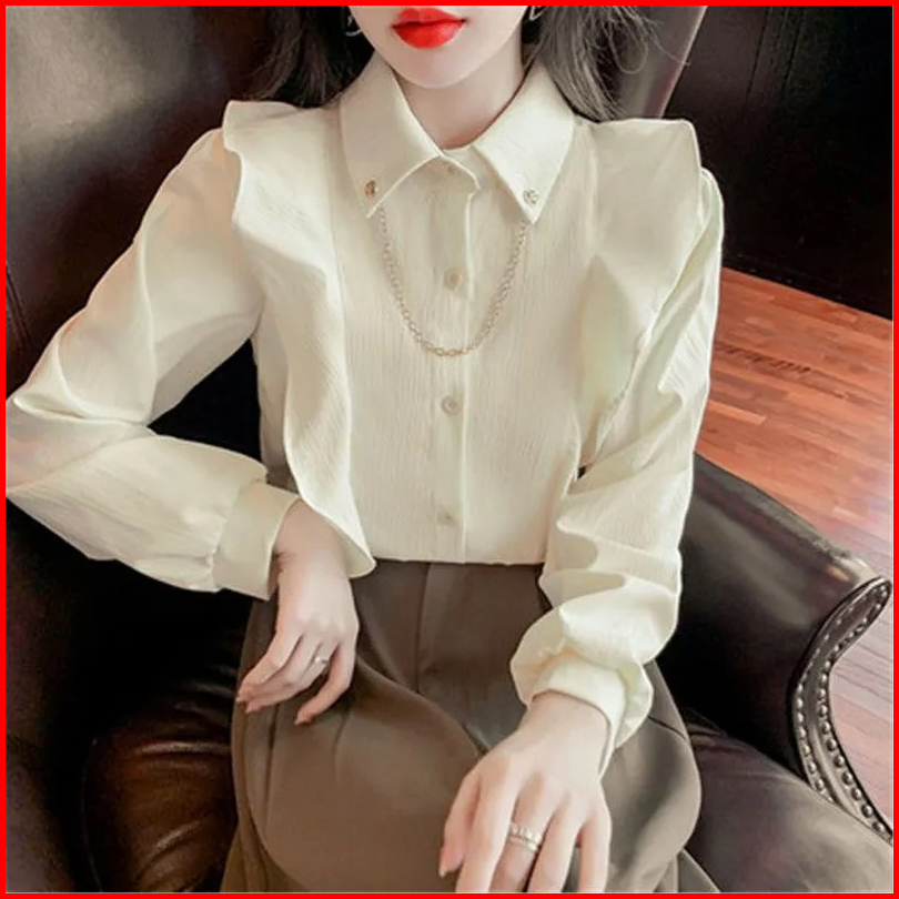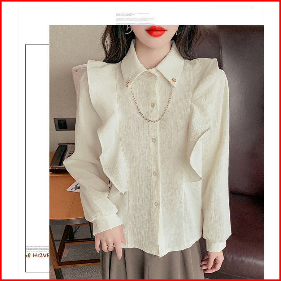Brightoutfit - Blouse Korean Style Wanita Kekinian Terbaru 2023 Ukuran Jumbo Model Lengan Panjang Blus Atasan Wanita Ker