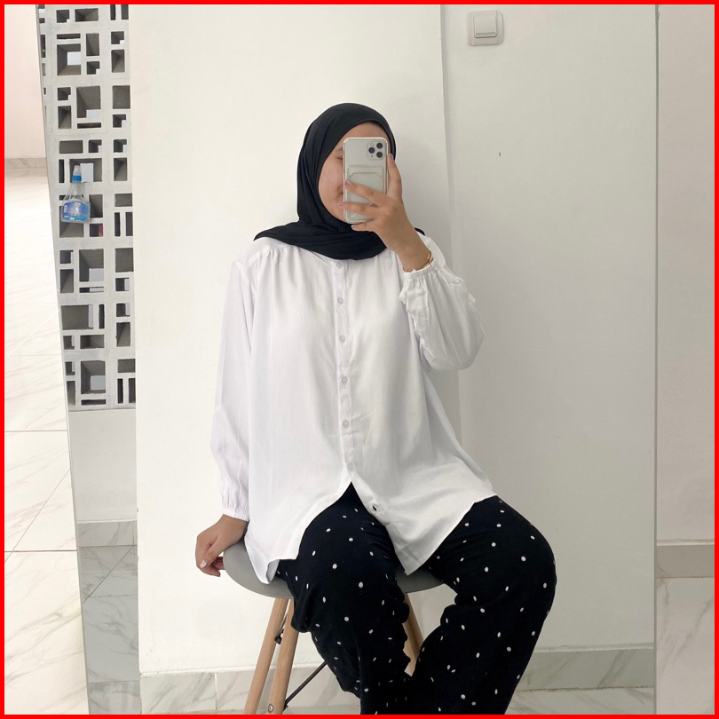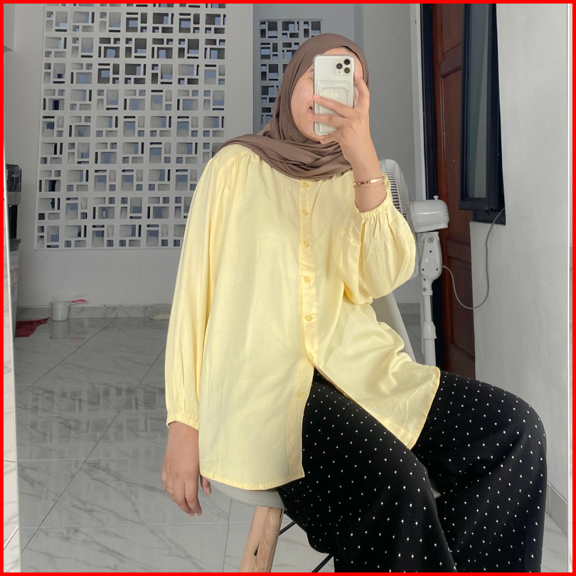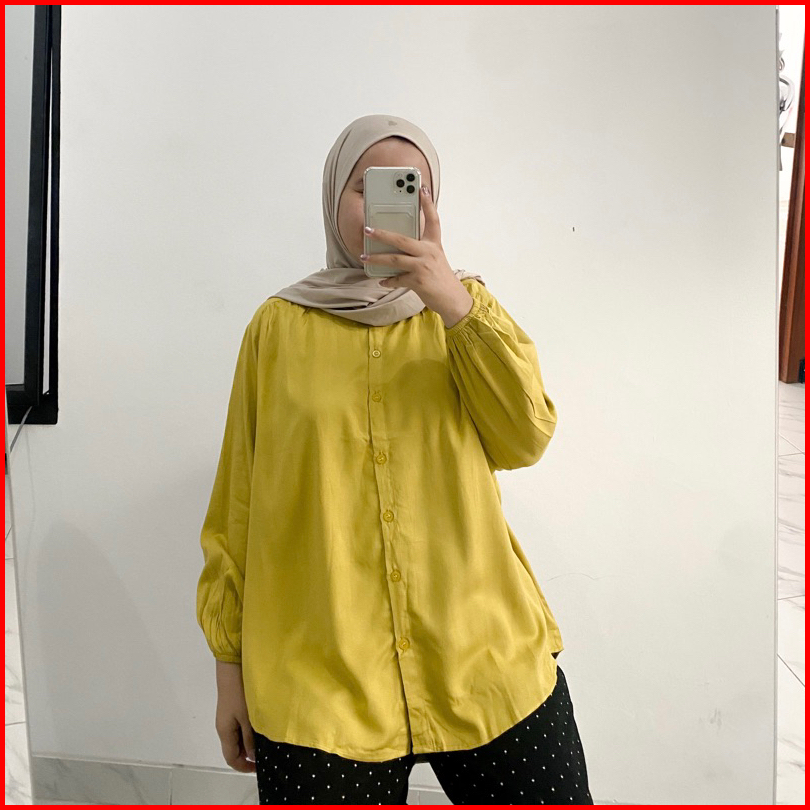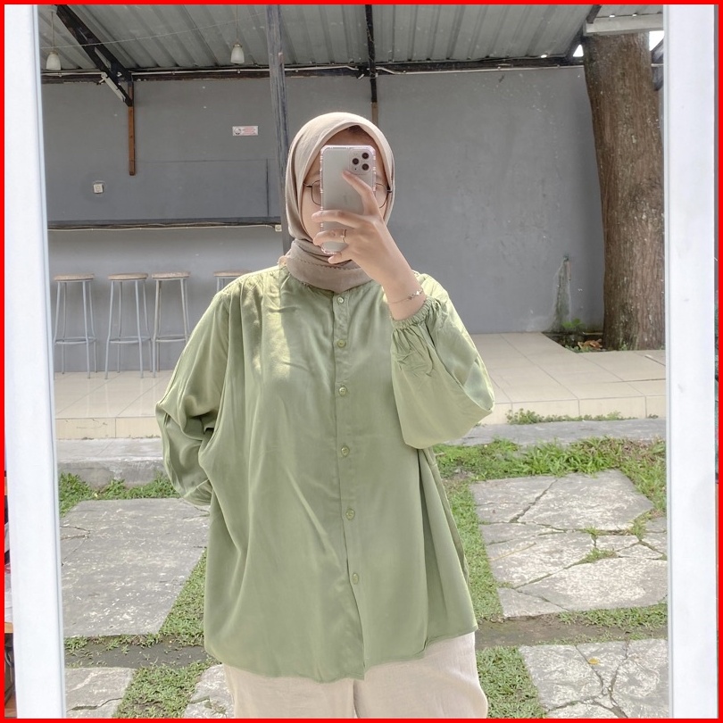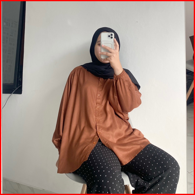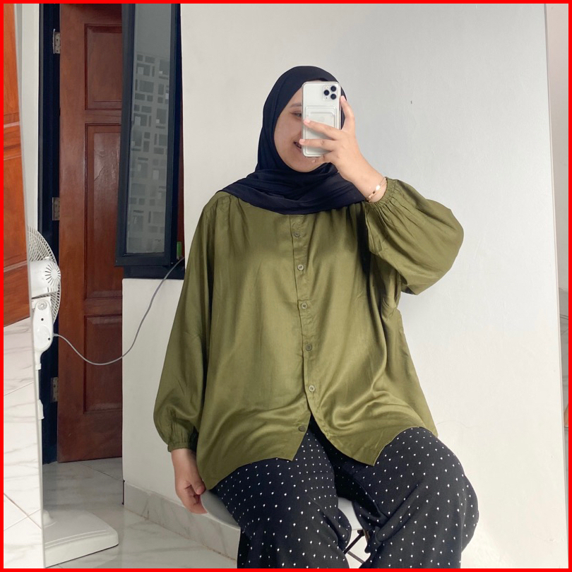 Nadia Collar O Series Caramel Army Black Milo Busui Friendly Blouse Bahan Rayon Premium Jumbo