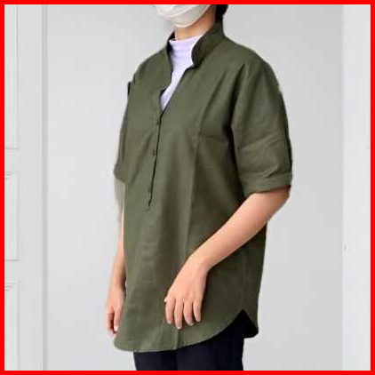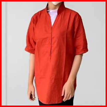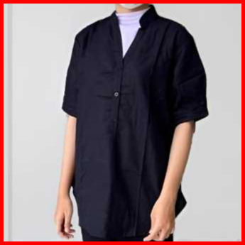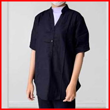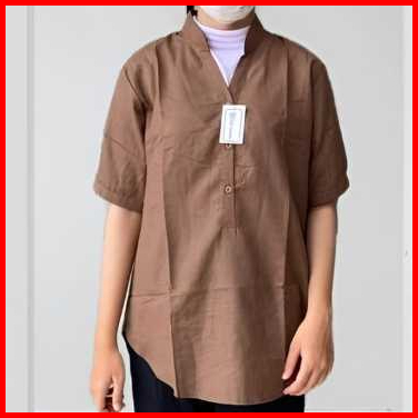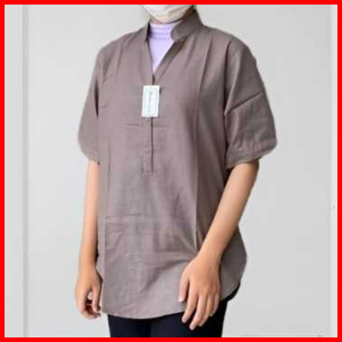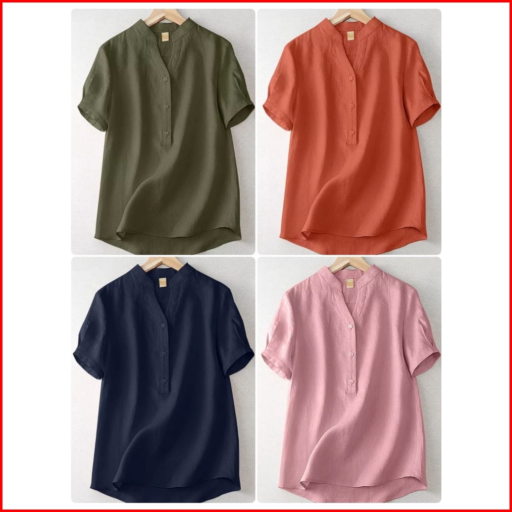 Kinan Blouse Atasan Wanita Linen Casual Size M L Xl Xxl Jumbo Kancing Aktif Kerah V Lengan Pendek