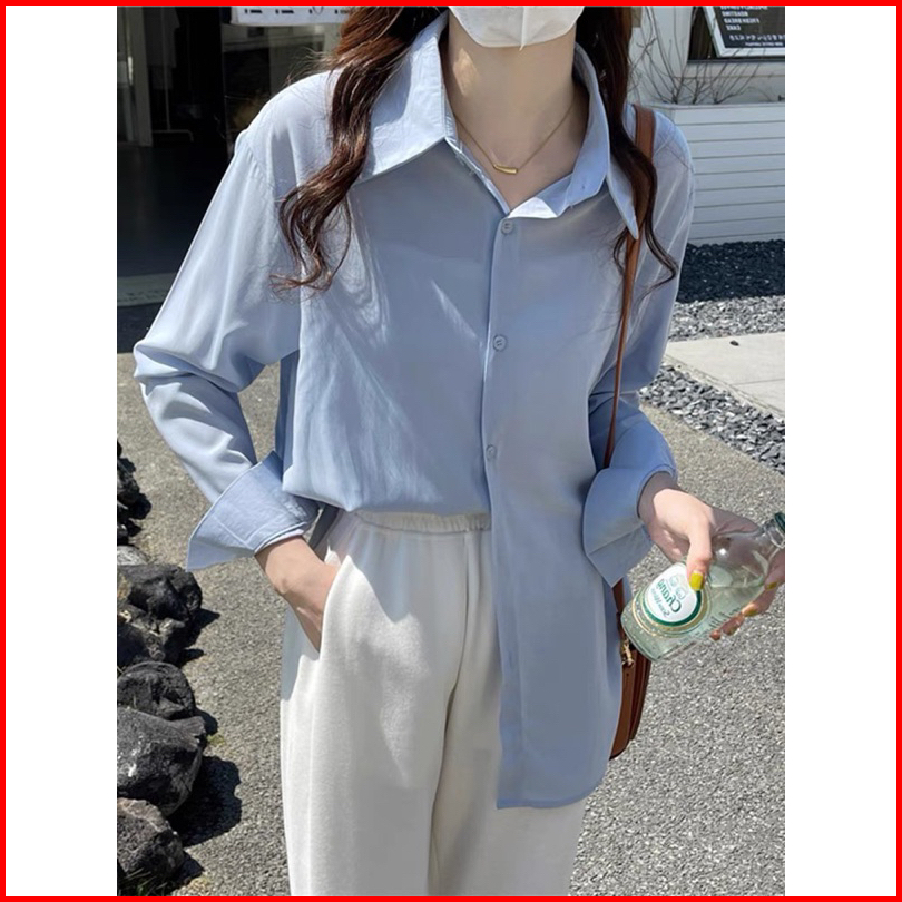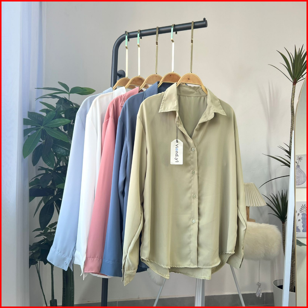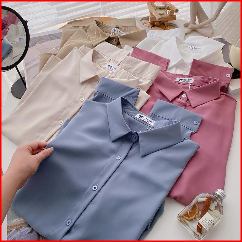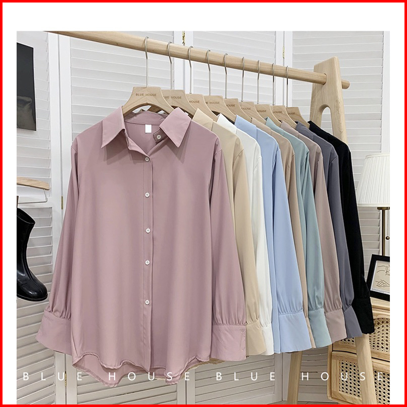 Kemeja Lengan Panjang Premium Korea Blouse Polyester Kancing Wanita Fashion Import
