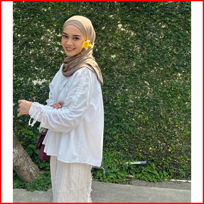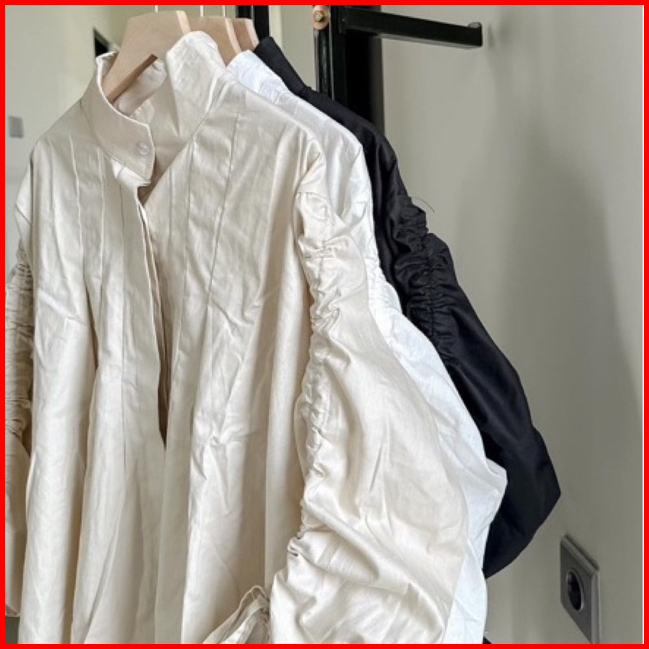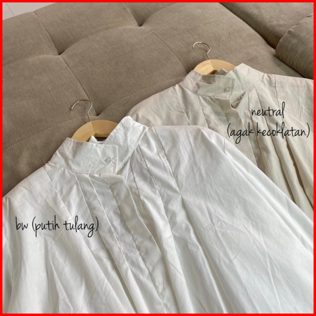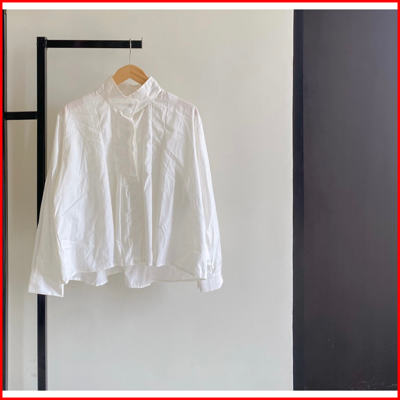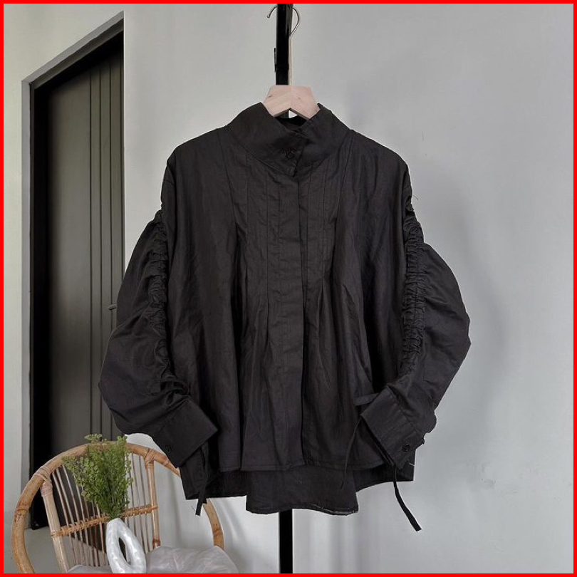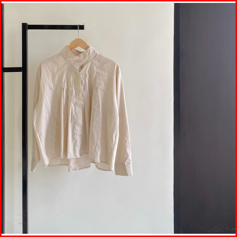 Aleka Top Blouse Kemeja Serut Lengan Crop Oversize Ruffle Turtleneck Baju Katun Poplin