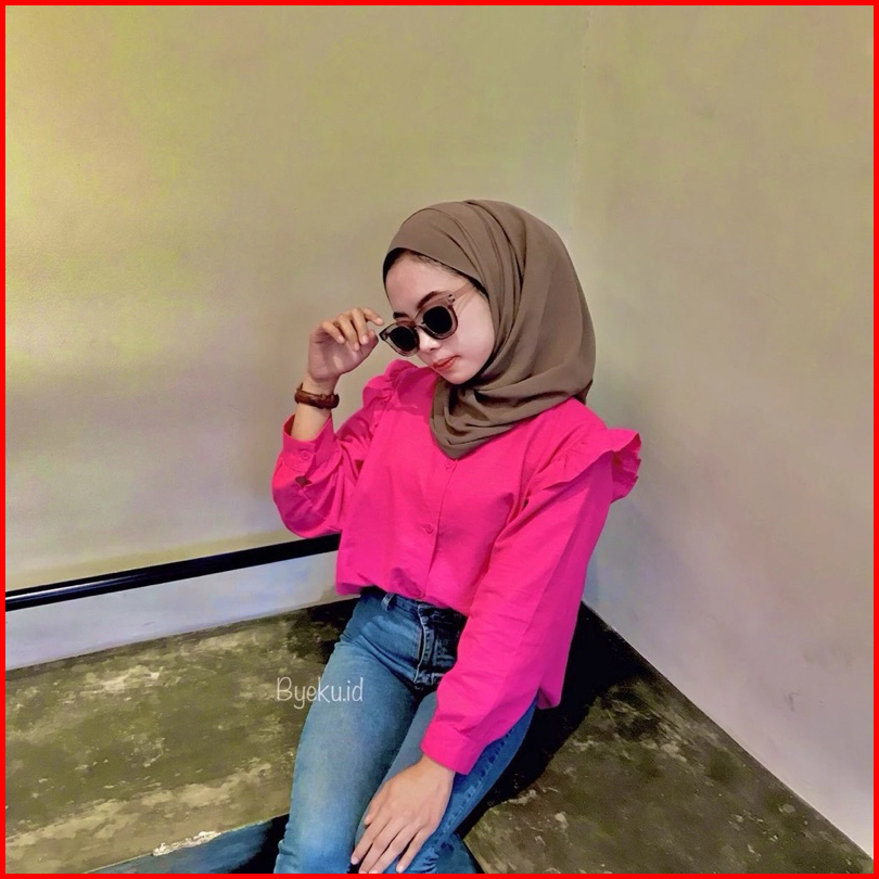 Yurim Blouse Ruffle - Atasan Wanita - Kemeja Linen Basic Lengan Panjang