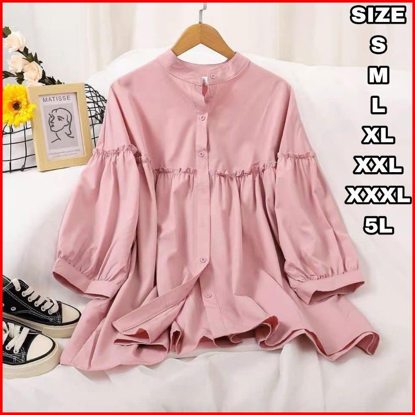 Dalopa Kemeja Wanita Atasan Jumbo Blouse Big Size Pakaian Wanita Over Size S M L Xl Xxl Xxxl 5l