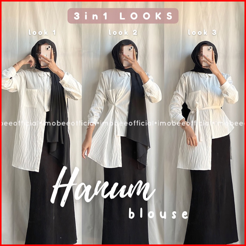 3in1 Hanum Blouse Pololinen Kemeja Tunik Ikat Tali