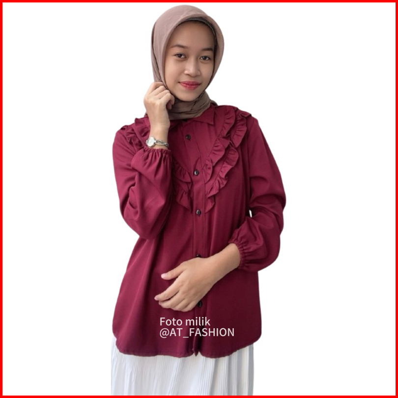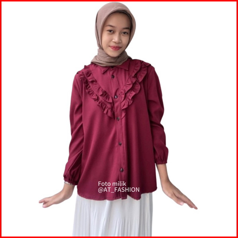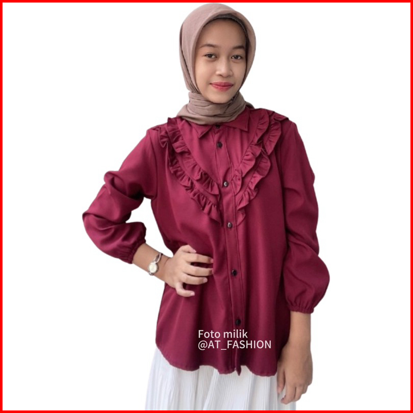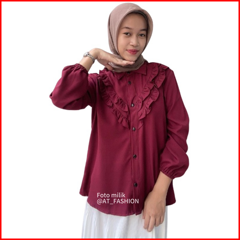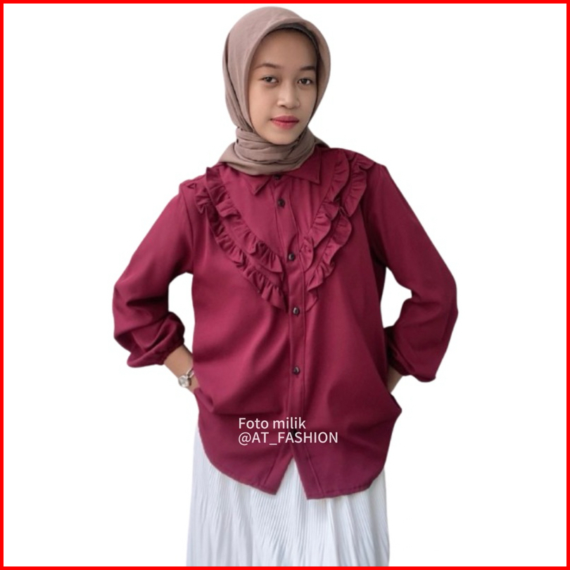 Blouse Korea -kemeja Rempel Double V - Atasan Wanita - Pakaian Terlaris - Korean Style - Pakaian Wanita - Blouse - Casua