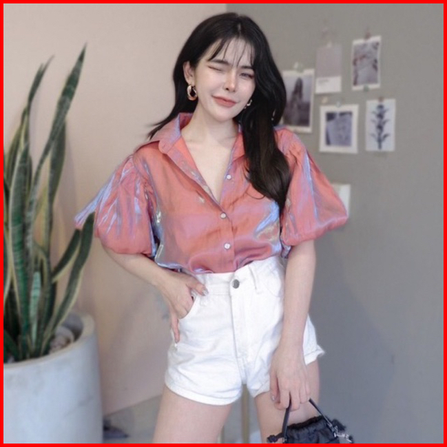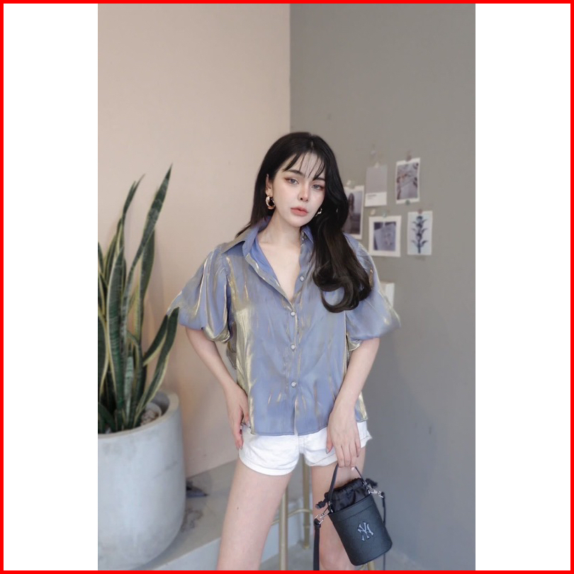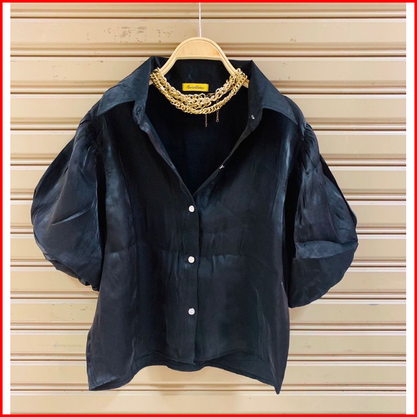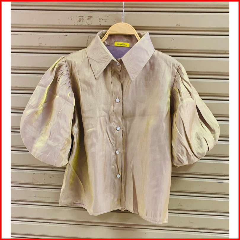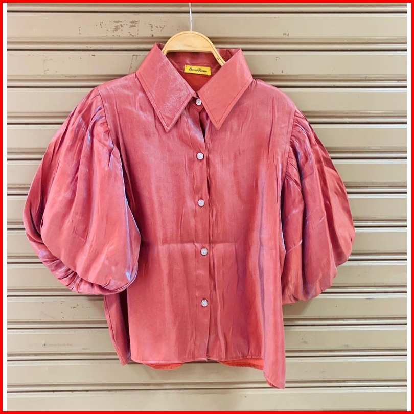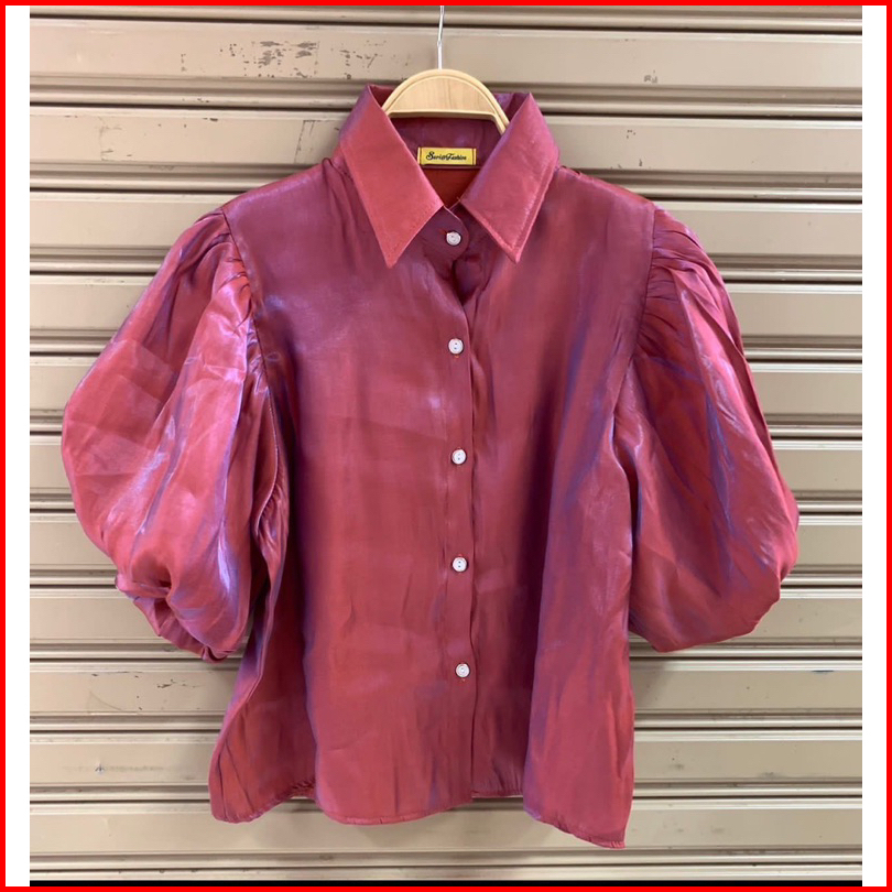 Kemeja Satin Balon Shimmering Puffy Shirt Import Bangkok