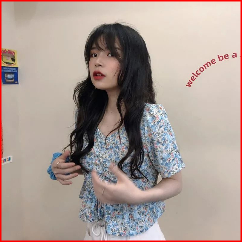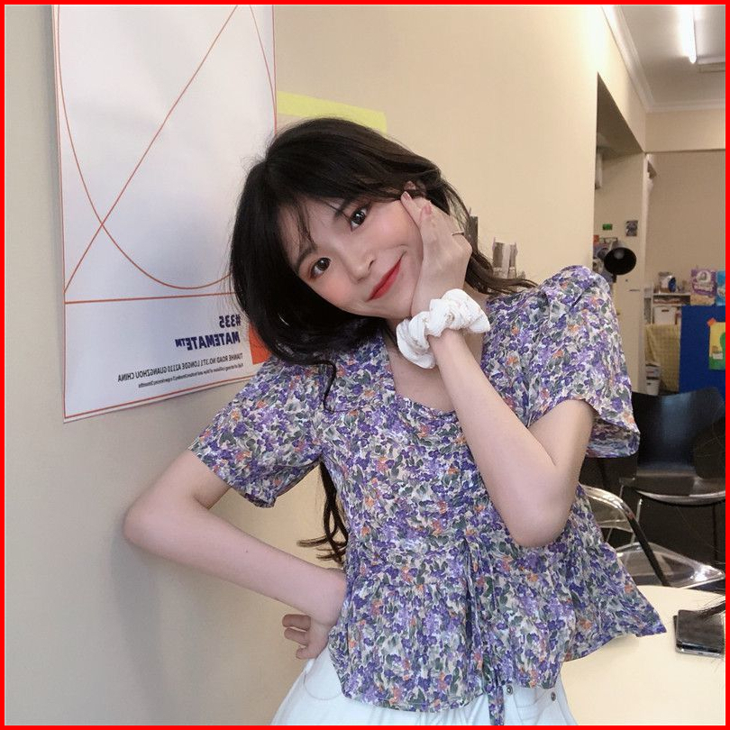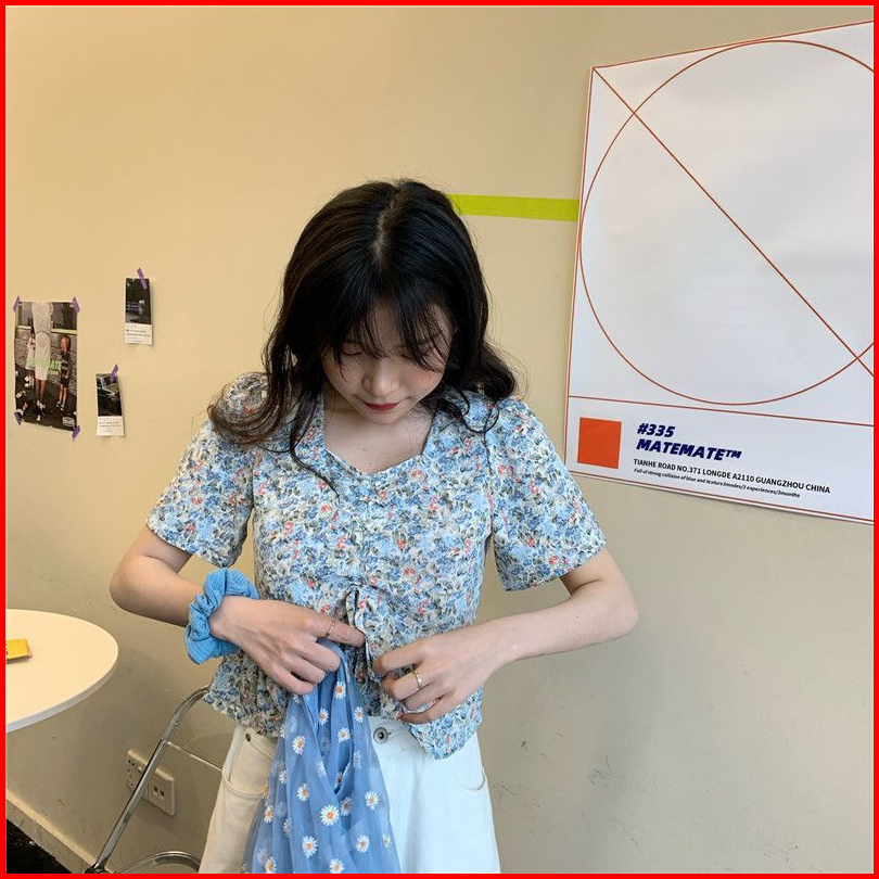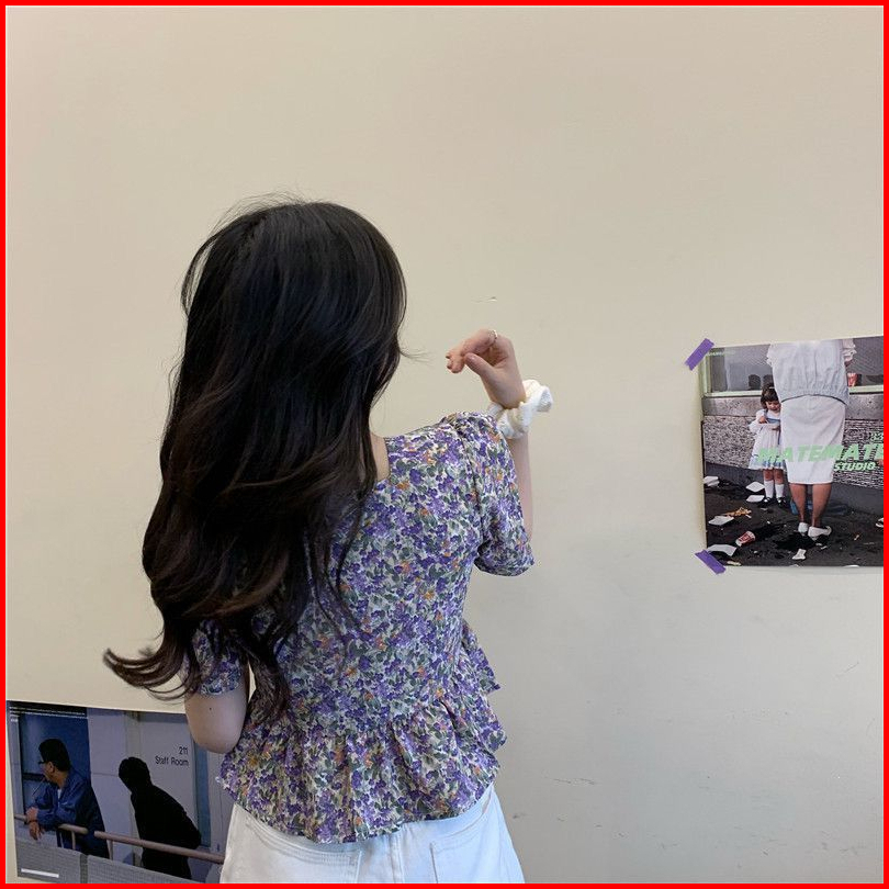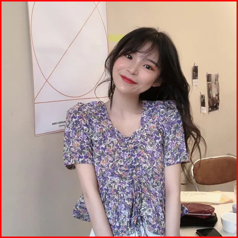 Vipedia Atasan Bunga Square Neck Flower Full Pattern Blouse Korean Style Aesthetic Penuh Bunga Ungu Biru Baju Bangkok Mo
