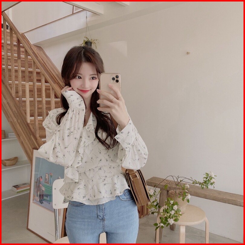 Charlotte Blouse Wanita Atasan Korean Style Lengan Panjang Pinggang Ikat