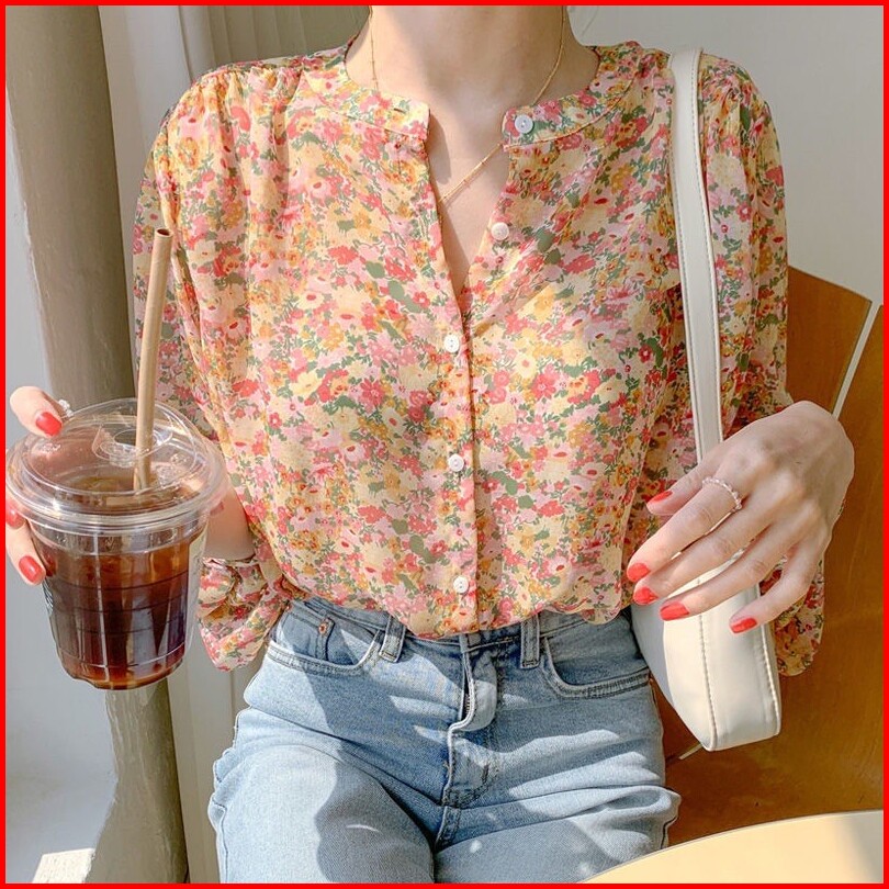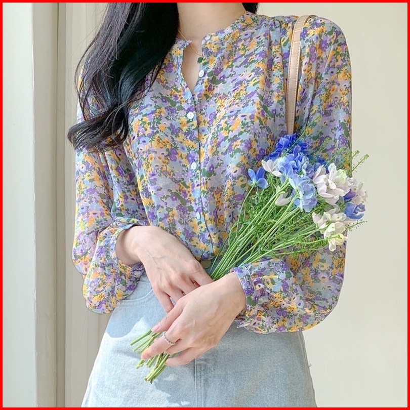 Christiana Blouse Bunga Wanita Lengan Panjang Korean Style