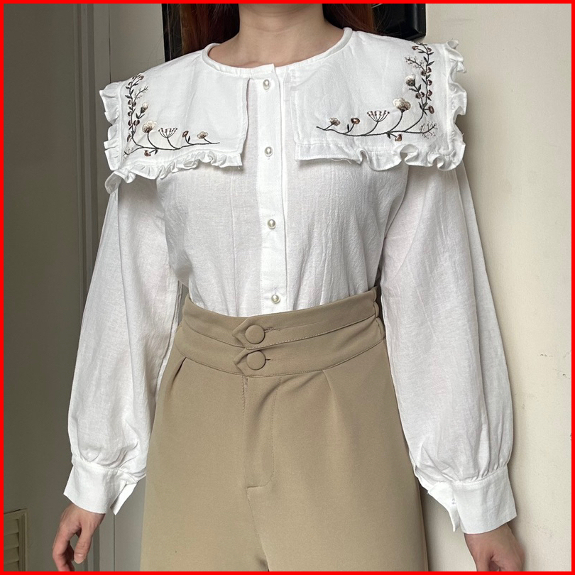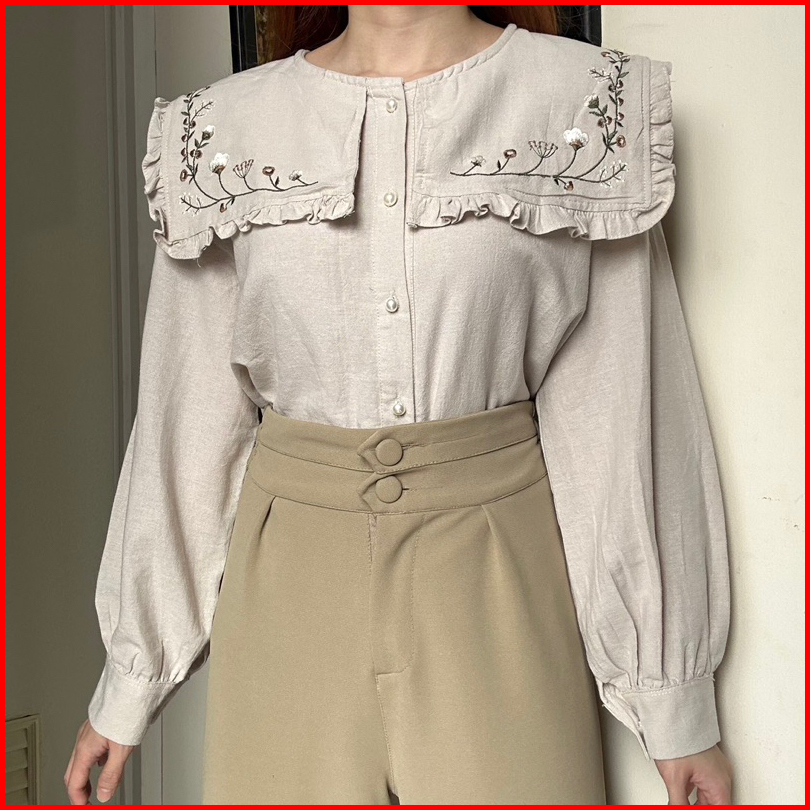 Juliet Top Atasan Kemeja Blouse Linen Bordir By Biel The Label