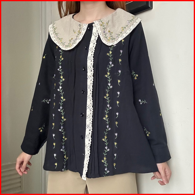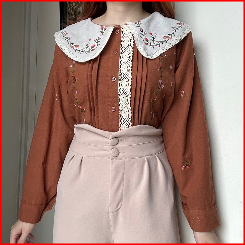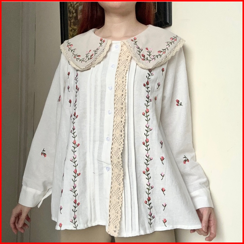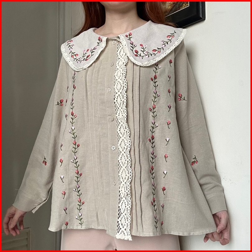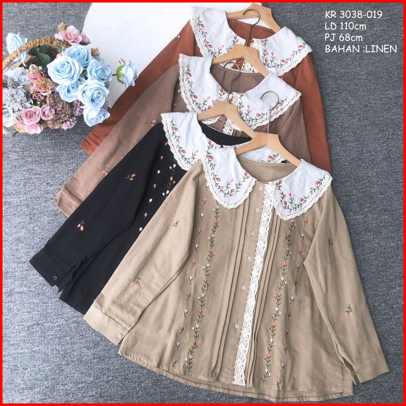 Suri Top Atasan Kemeja Blouse Wanita Kerja Linen Bordir Korean Style By Biel The Label