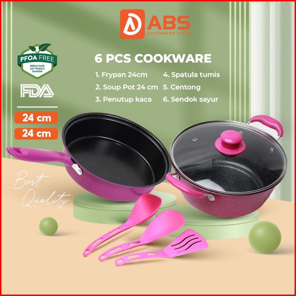 Abs Panci Wajan Teflon Anti Lengket Dengan Tutup Kaca 6 Pcs Panci Set Isi 6pcs Pot Series Panci Terlengkap Dengan Tutupa