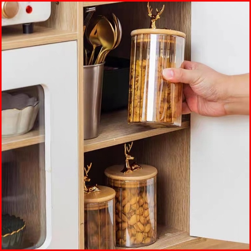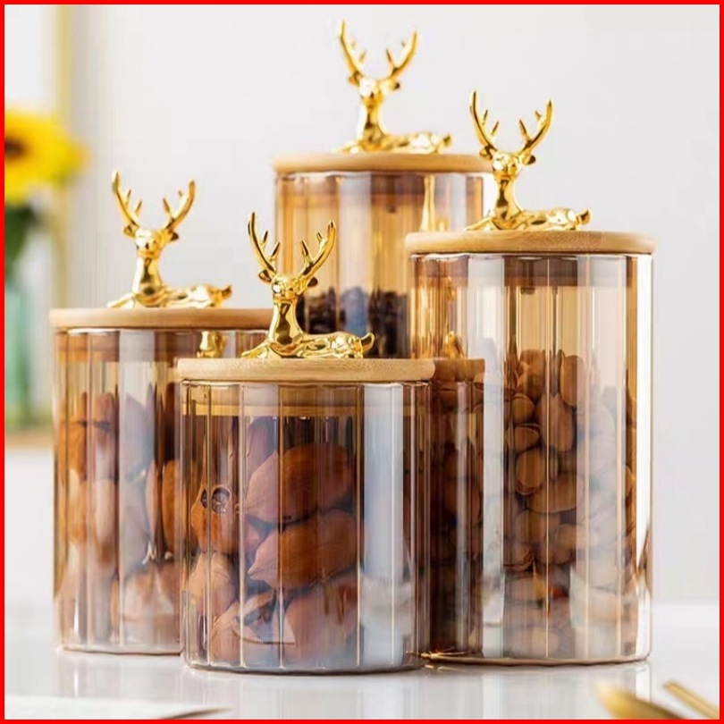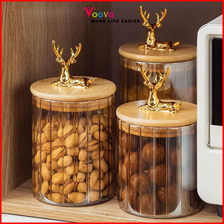 Voova Tempat Penyimpanan Kaca Bening Toples Makanan Serbaguna Toples Kaca Tebal Jar Toples Kaca Kota Toples Hari Rayak