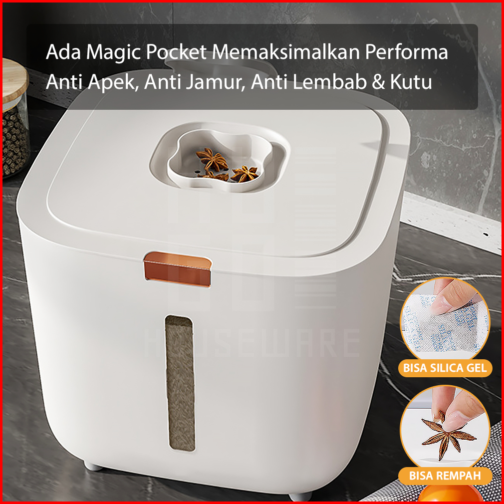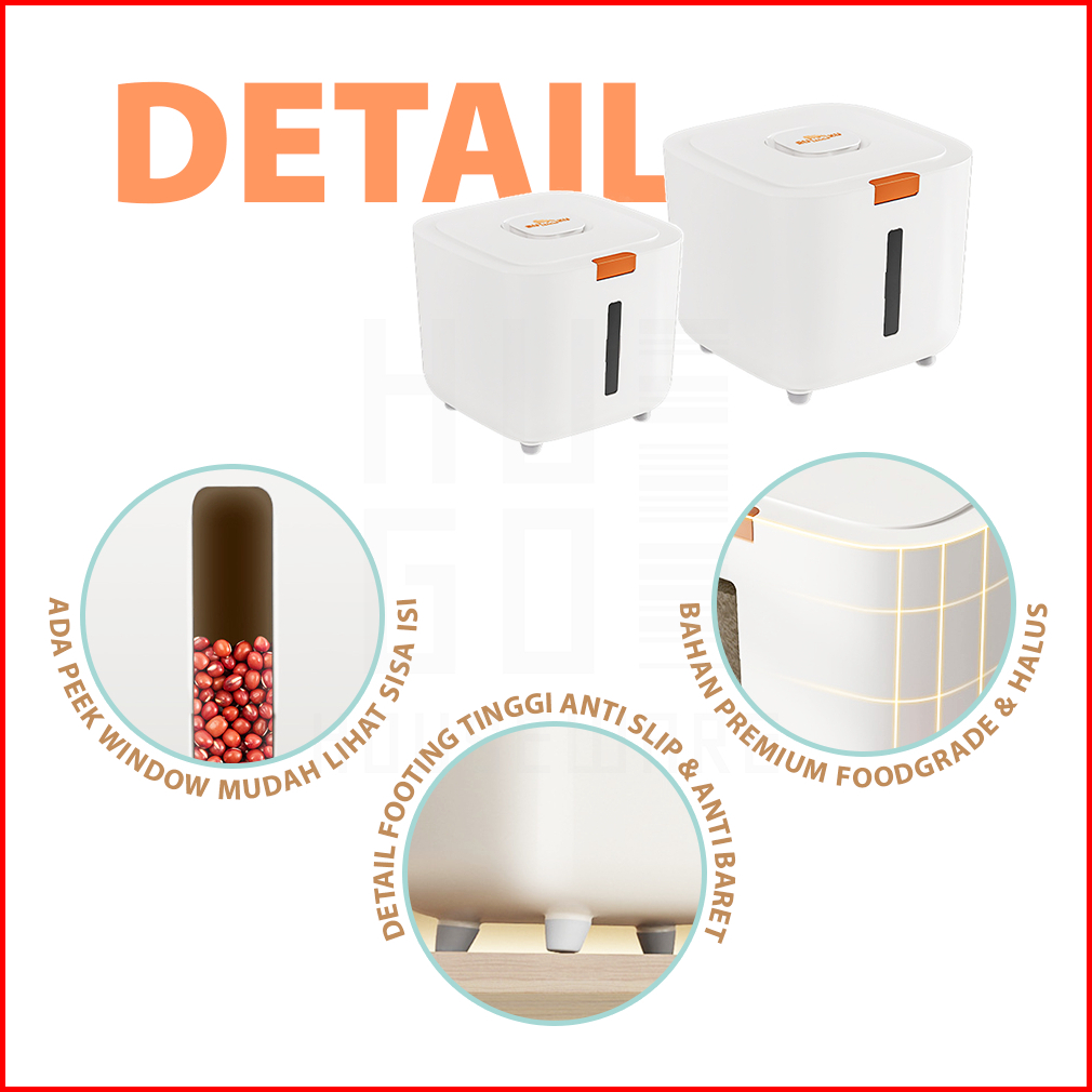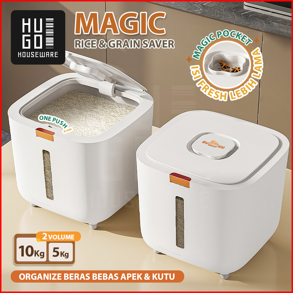 Hugo Tempat Penyimpanan Beras Anti Kutu Dan Serangga 5kg 10kg Dispenser Beras Kotak Beras Plastik Rice Bucket