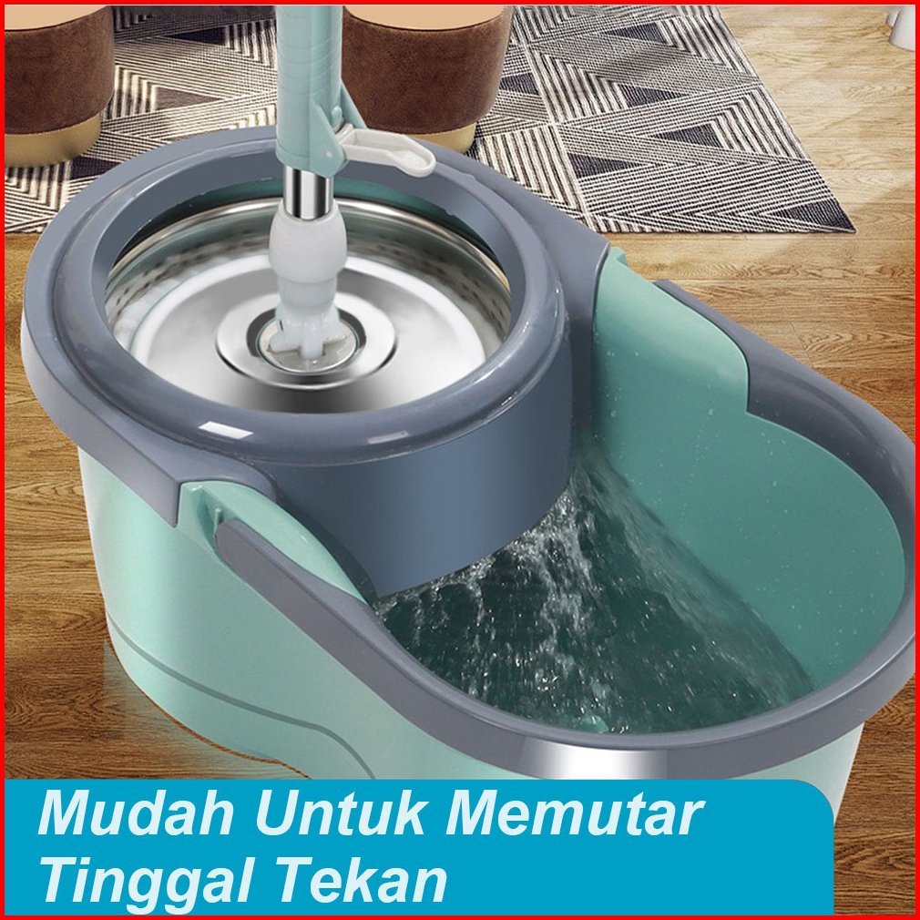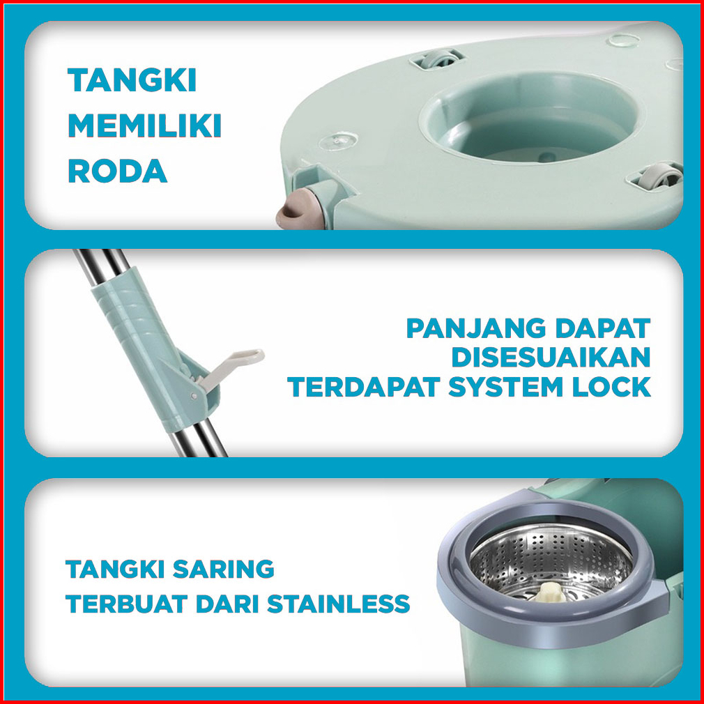Estation - Alat Pel Lantai Mop Dengan Rol Praktis Kain Pel Putar Spin Mop 6l Bucket Ultra Mop