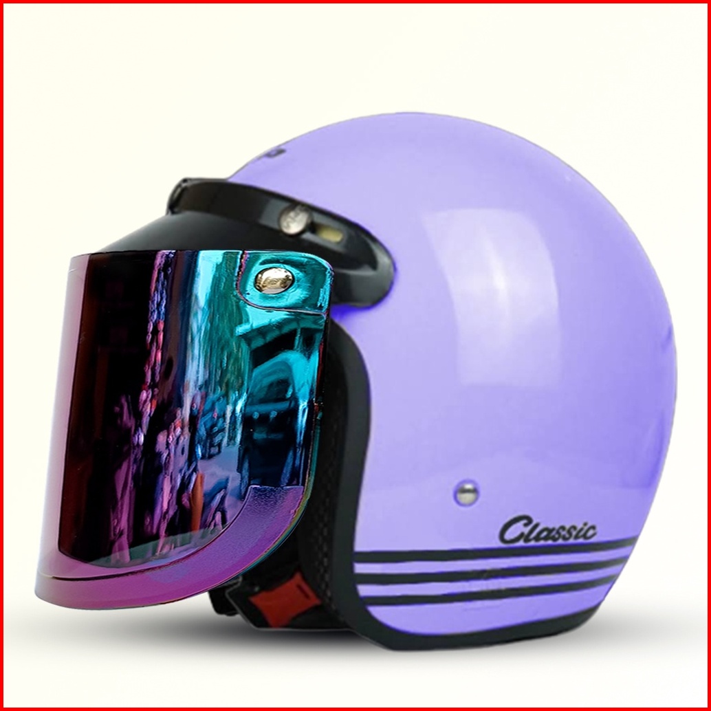 Helm Bogo Retro Classic Pria Dan Wanita Dewasa Sni Murah Harga Pabrik Kualitas Premium Kaca Datar Injak Pelangi Free Pac