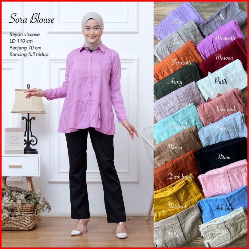 NudePink,SORA BLOUSE, Lilac, SORA BLOUSE, Mustard, SORA BLOUSE, Wardah, SORA BLOUSE, PutihBW, SORA BLOUSE, Cream, SORA BLOUSE, Teracota,SORA BLOUSE, Army, SORA BLOUSE, Black, SORA BLOUSE, DustyGrey,SORA BLOUS, AbuCerah,SORA BLOUSE, Navy, SORA BLOUSE, Maroon, SORA BLOUSE, Ash Blue,SORA BLOUSE, Magenta, SORA BLOUSE
