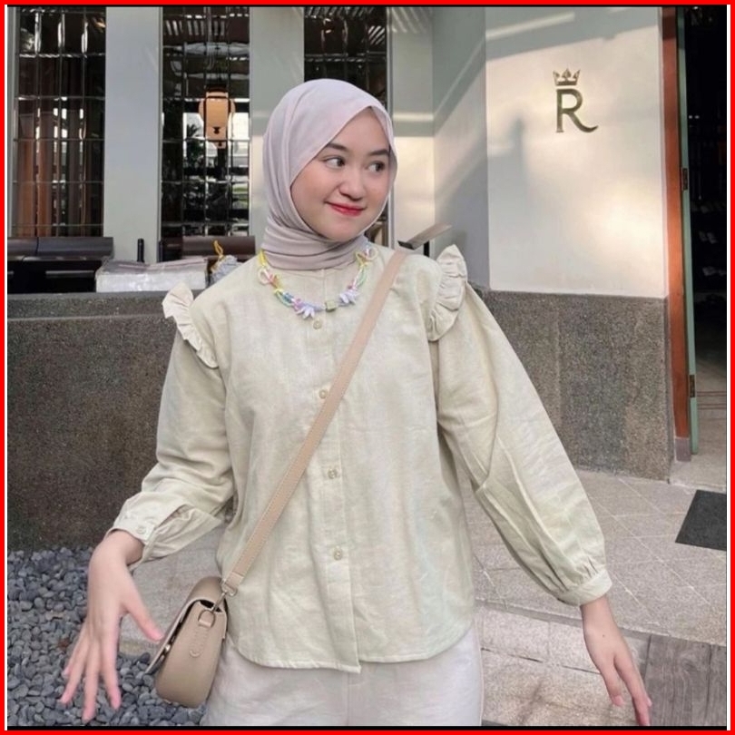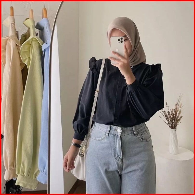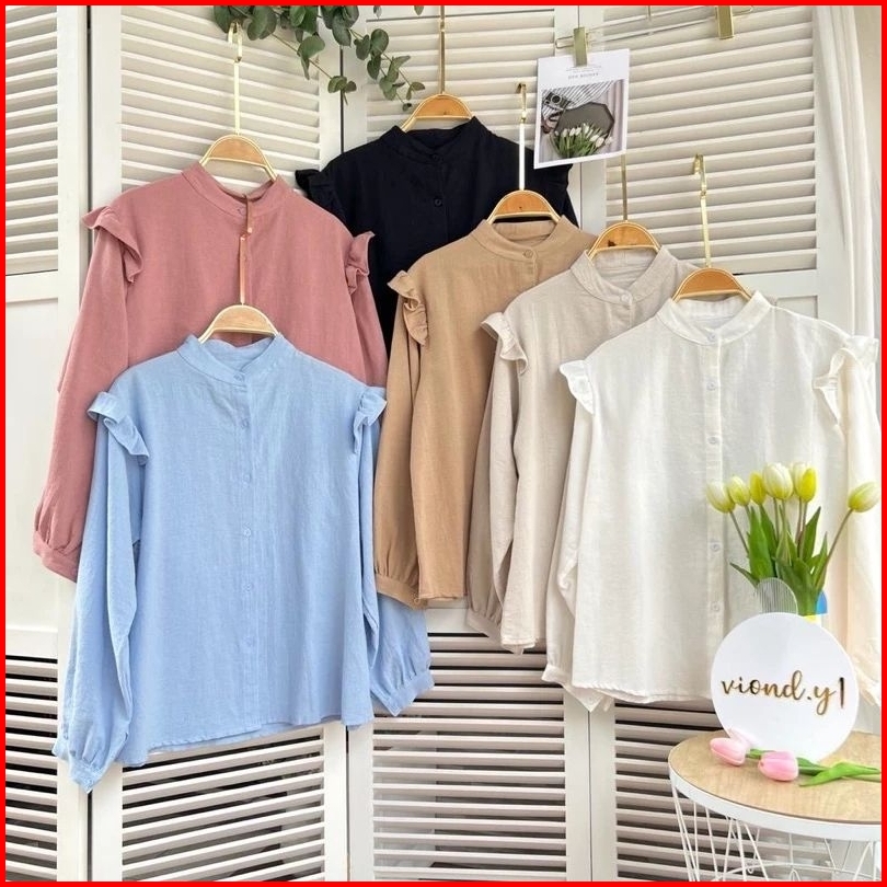 Yurim Blouse Ruffle-atasan Wanita-kemeja Linen Wanita Basic Lengan Panjang
