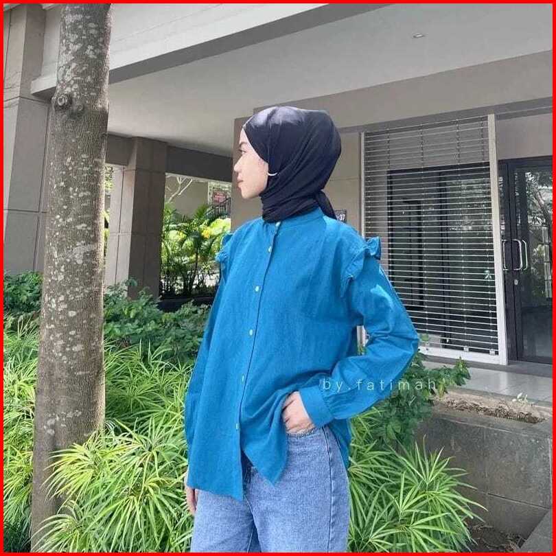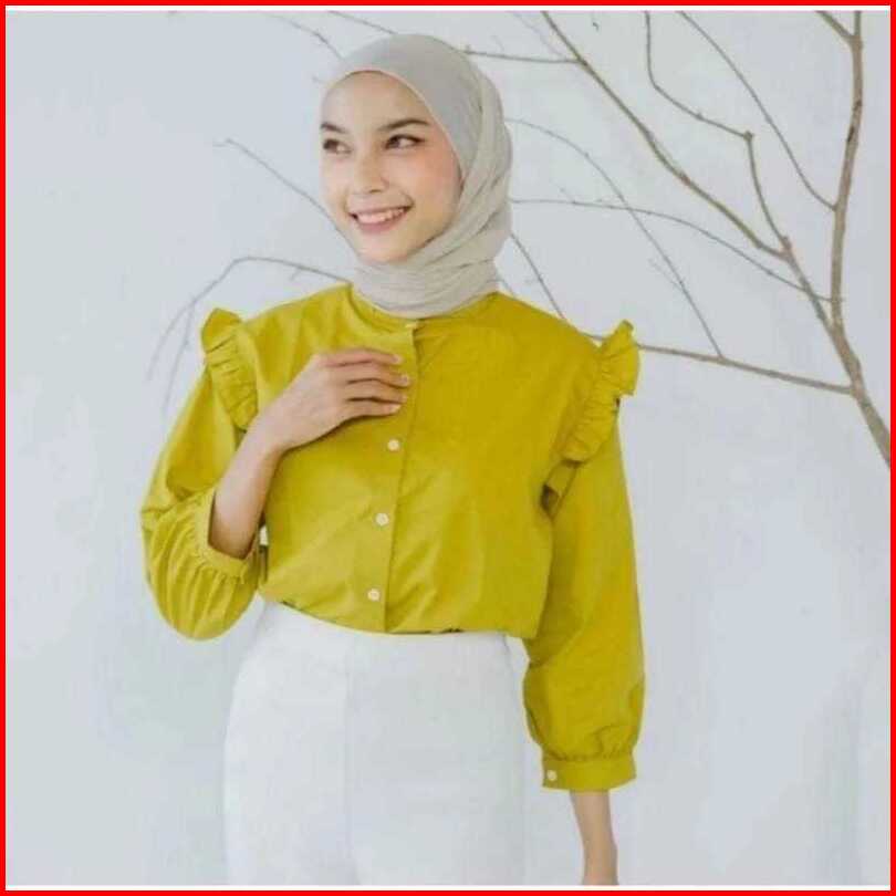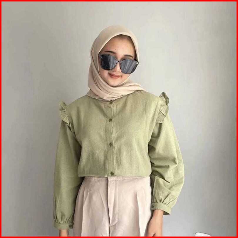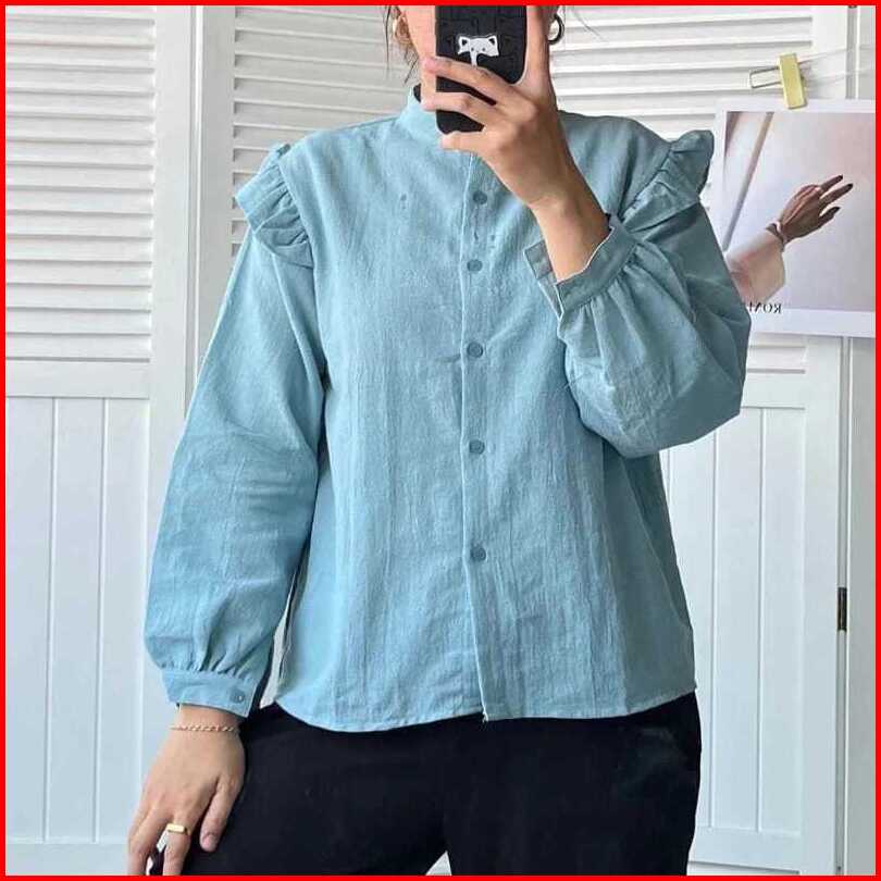 Yurim Blouse Ruffle-atasan Wanita-kemeja Linen Wanita Basic Lengan Panjang