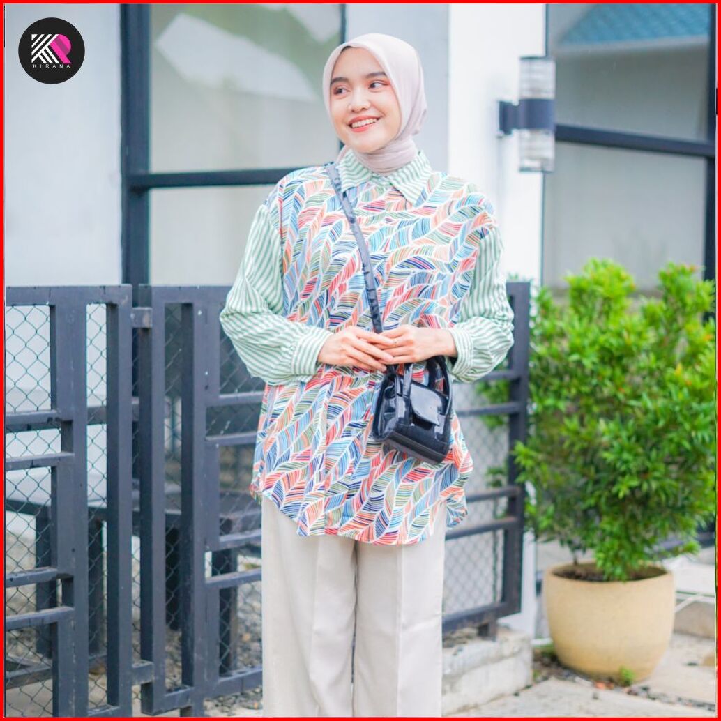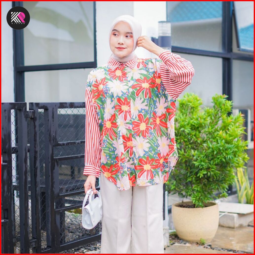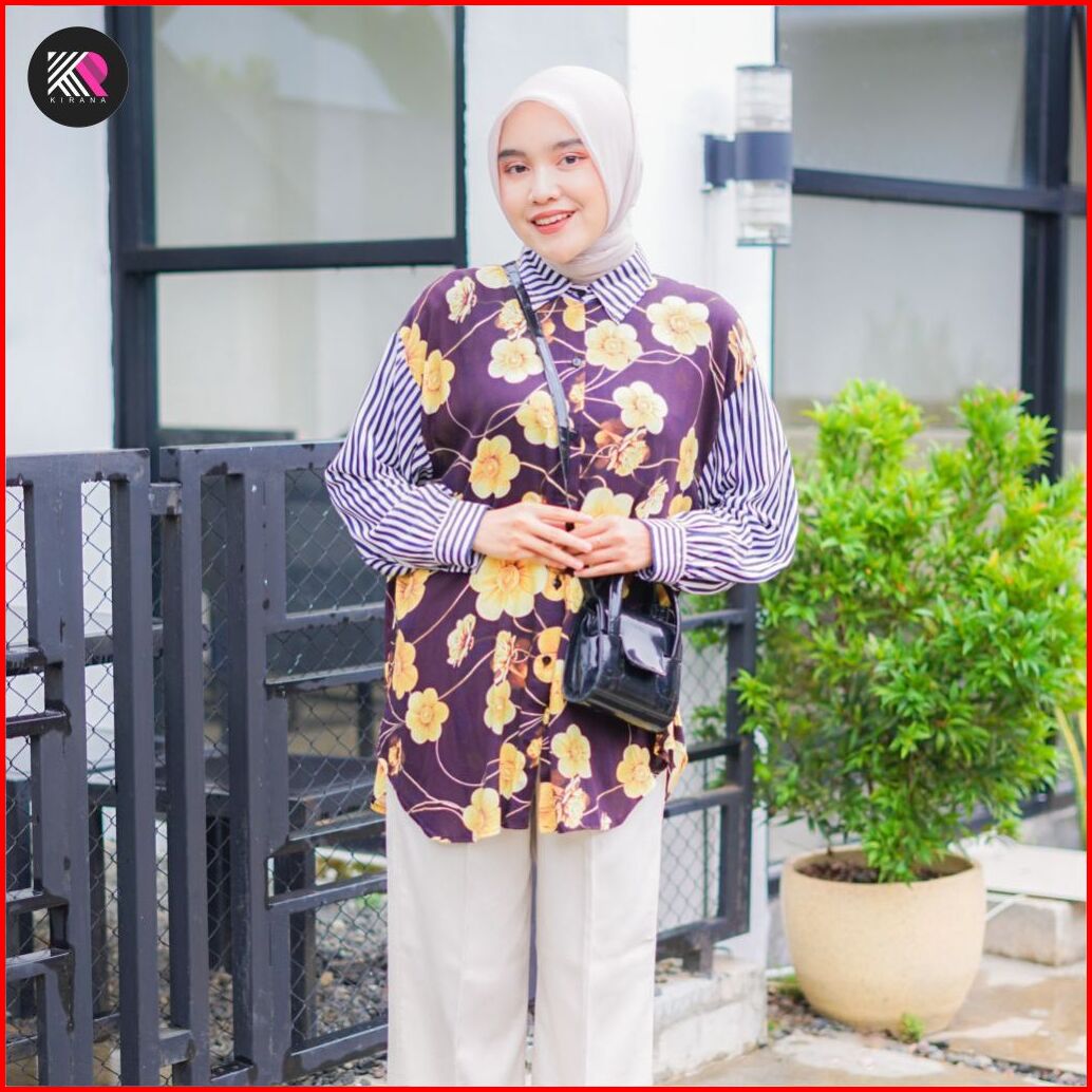 Kemeja Oversize Kamila Atasan Baju Wanita Jumbo Ld130 Rayon Motif