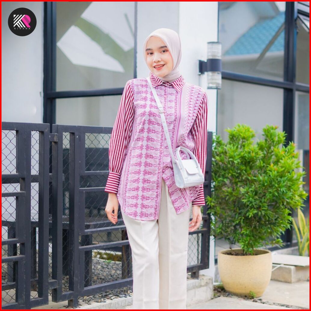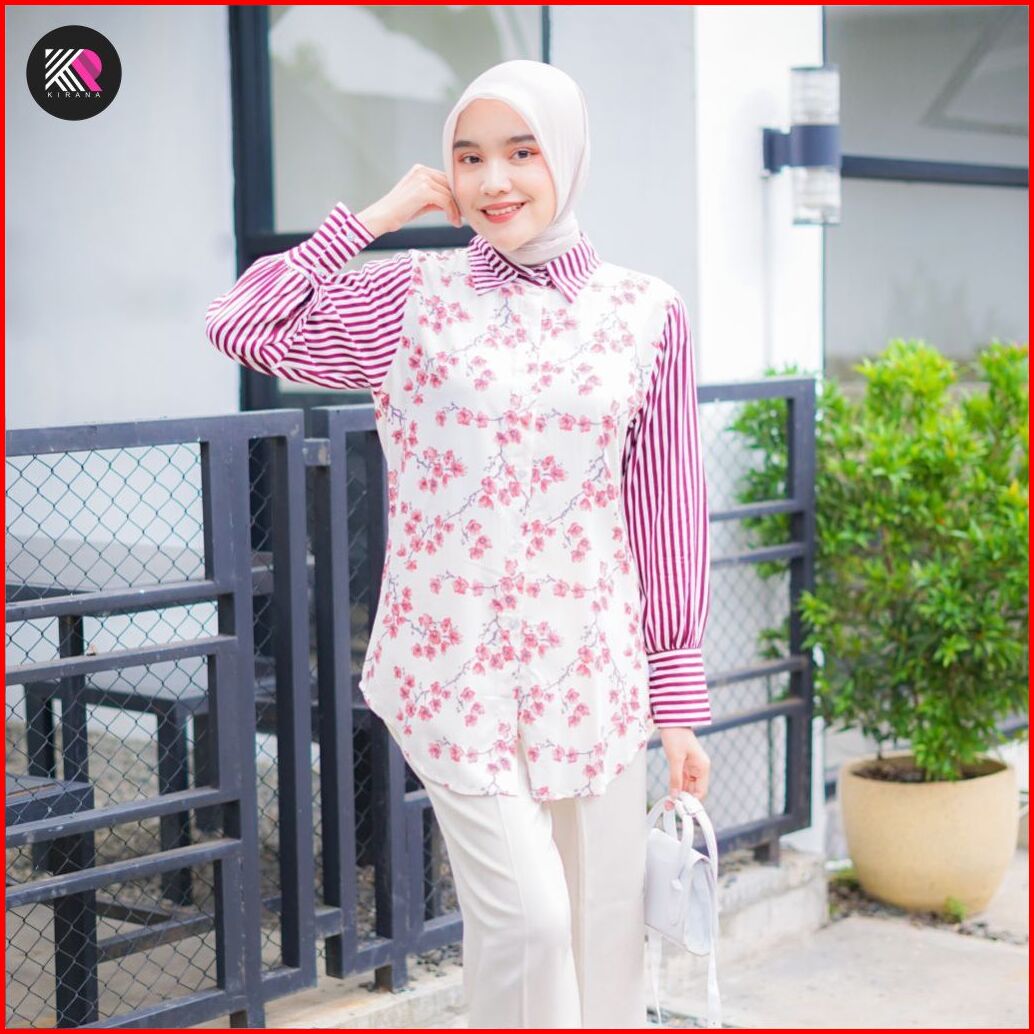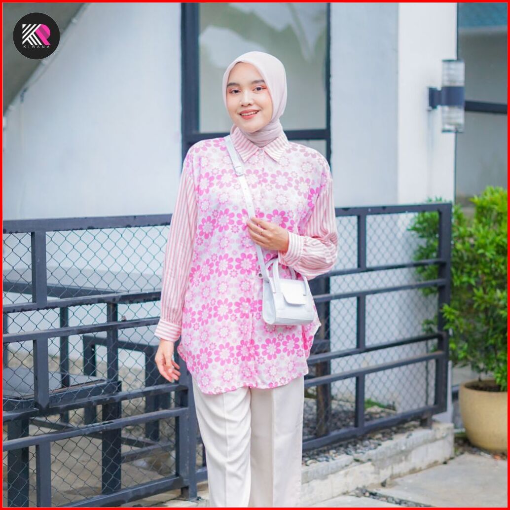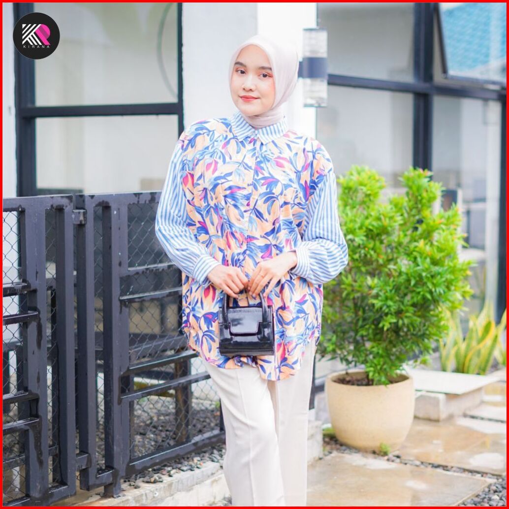 Kemeja Oversize Kamila Atasan Baju Wanita Jumbo Ld130 Rayon Motif