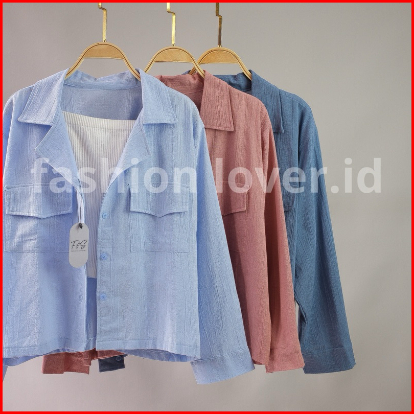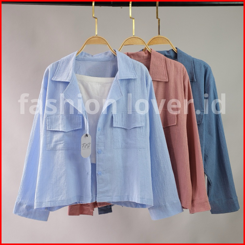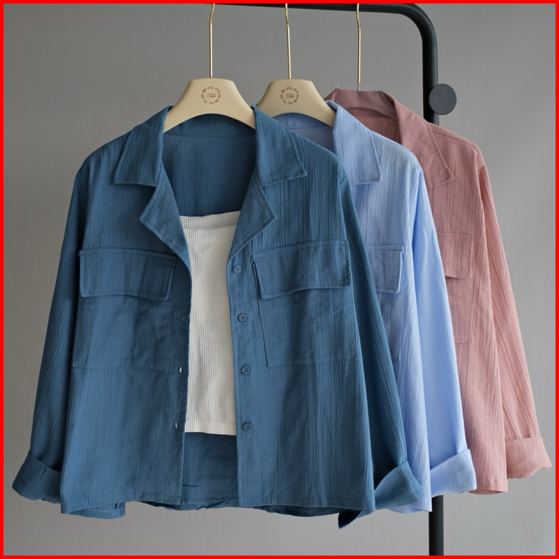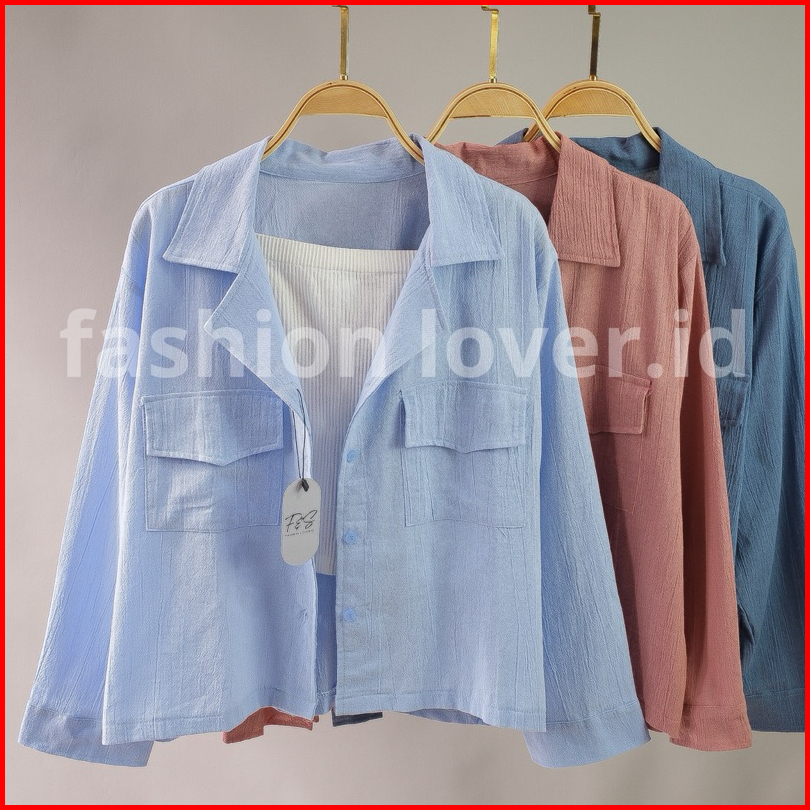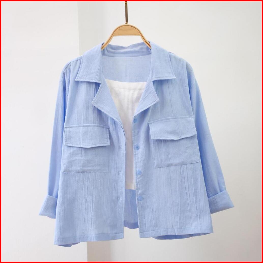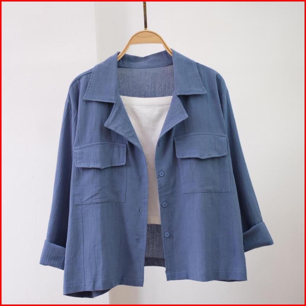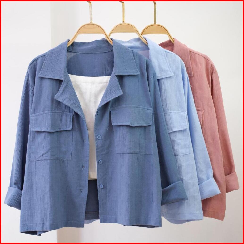 Kemeja Outher Wanita Ld 110cm Kemeja Linen Basic Shirt Kemeja Polos Lengan Panjang