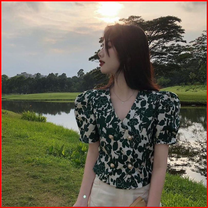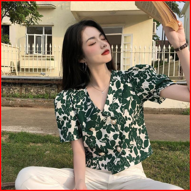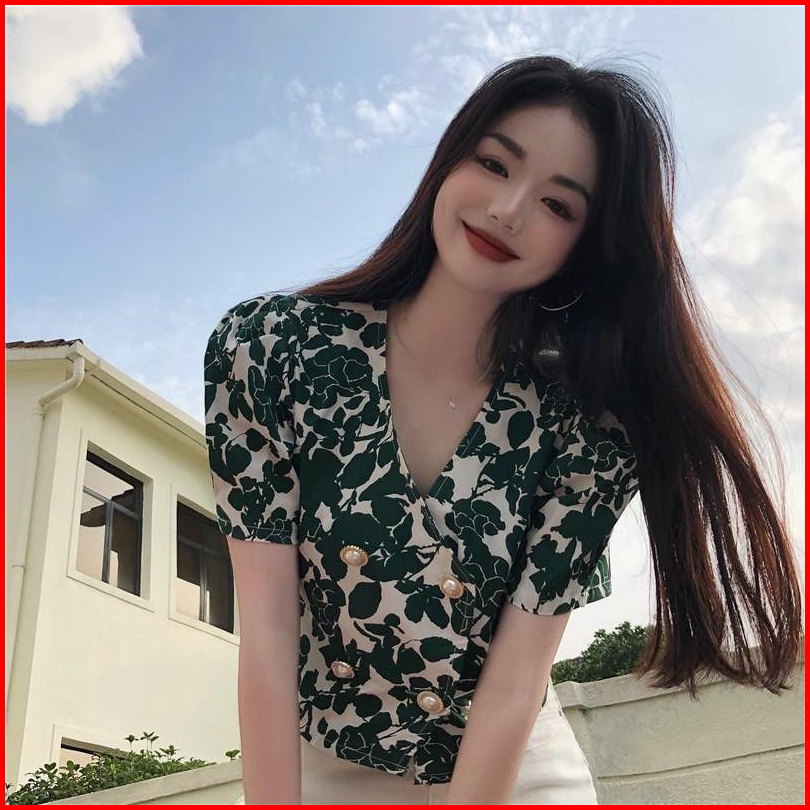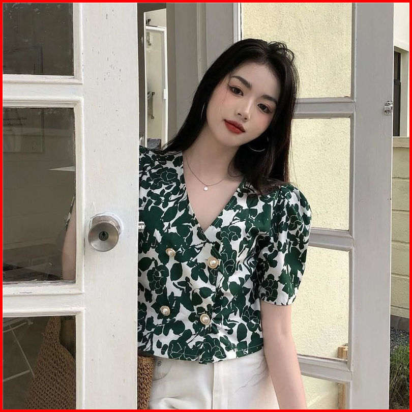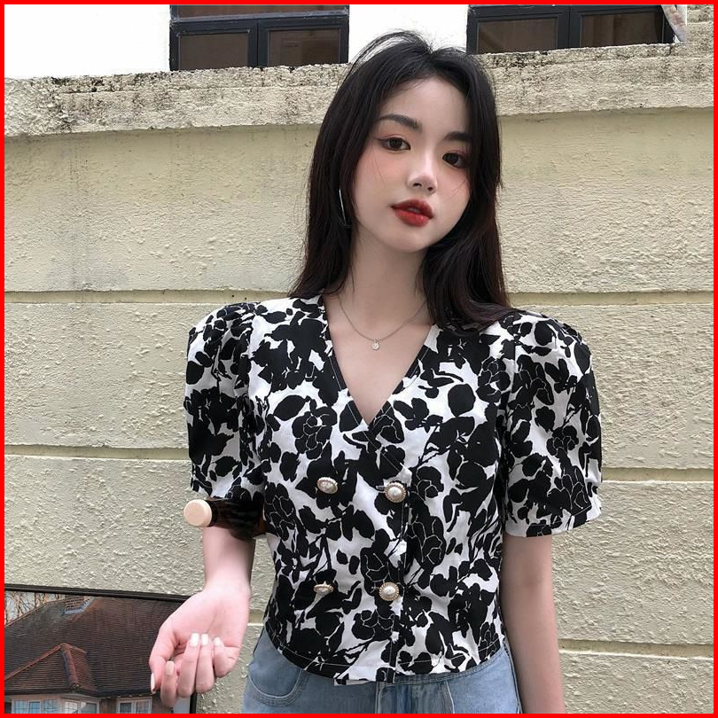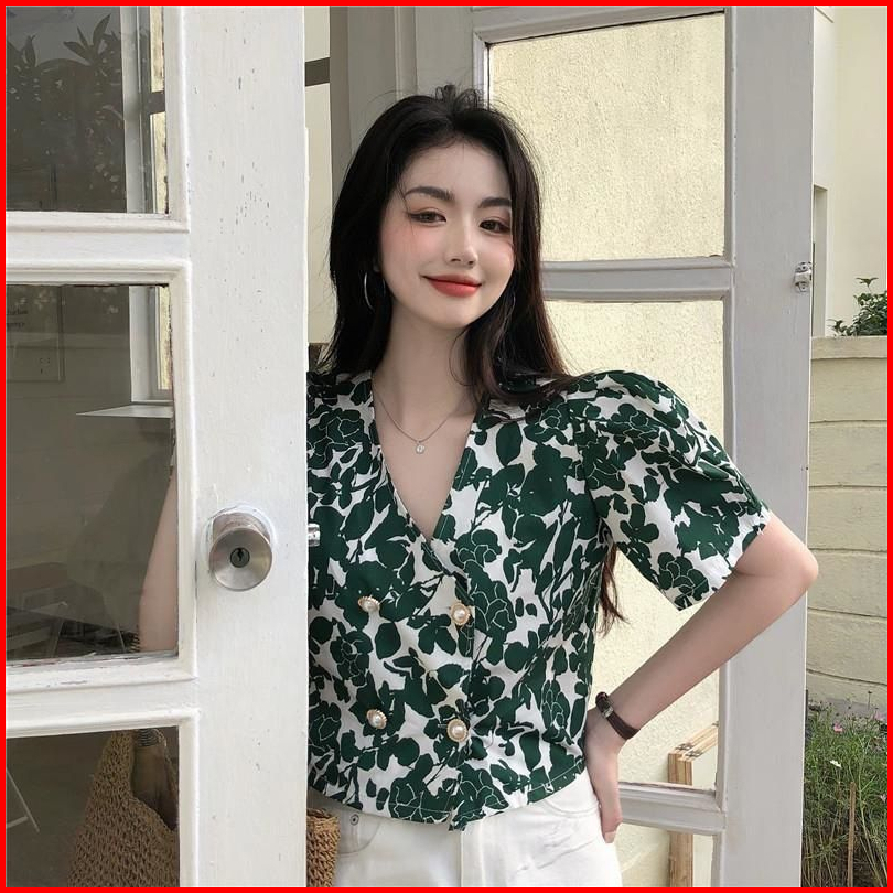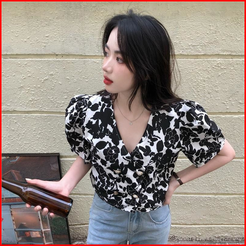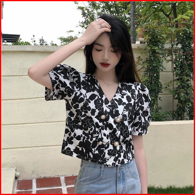 Vipedia Atasan V Neck Motif Rose Corak Bunga Semi Formal Korean Style Aesthetic Baju Bangkok Simple Unik Kancing Hidup B
