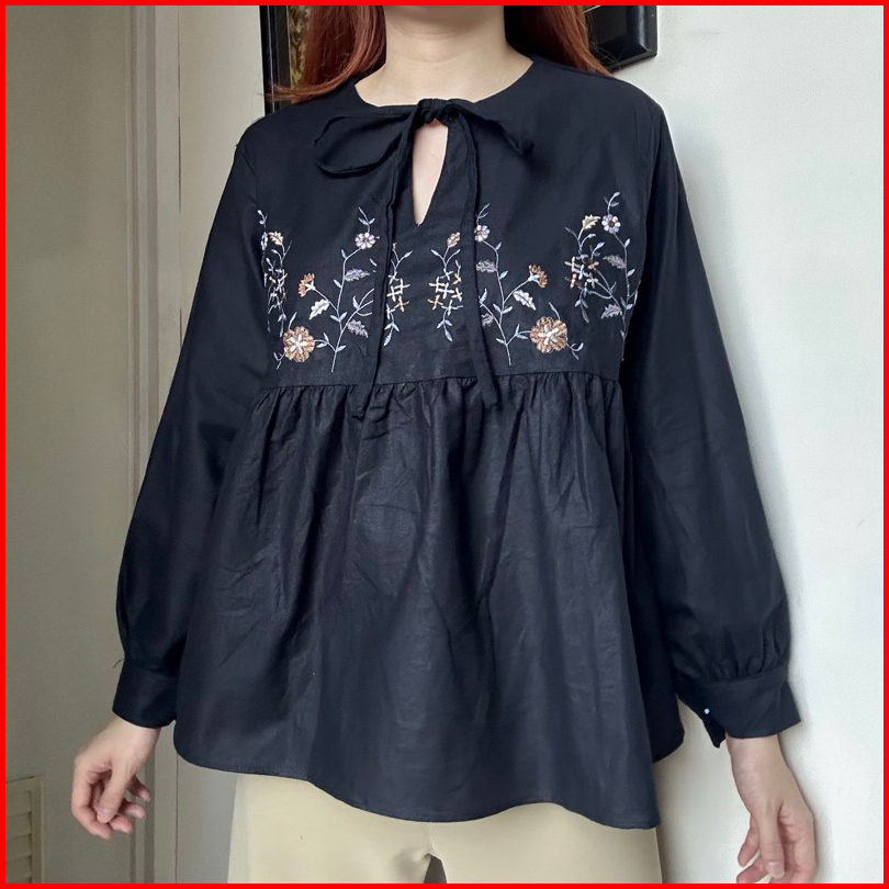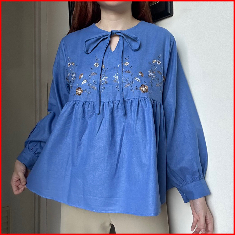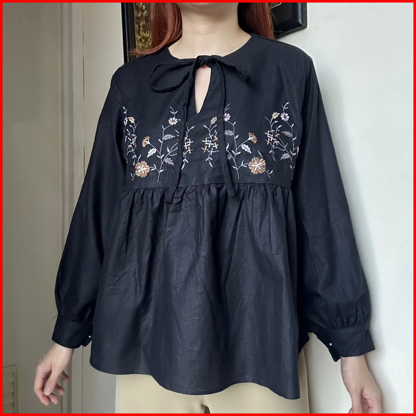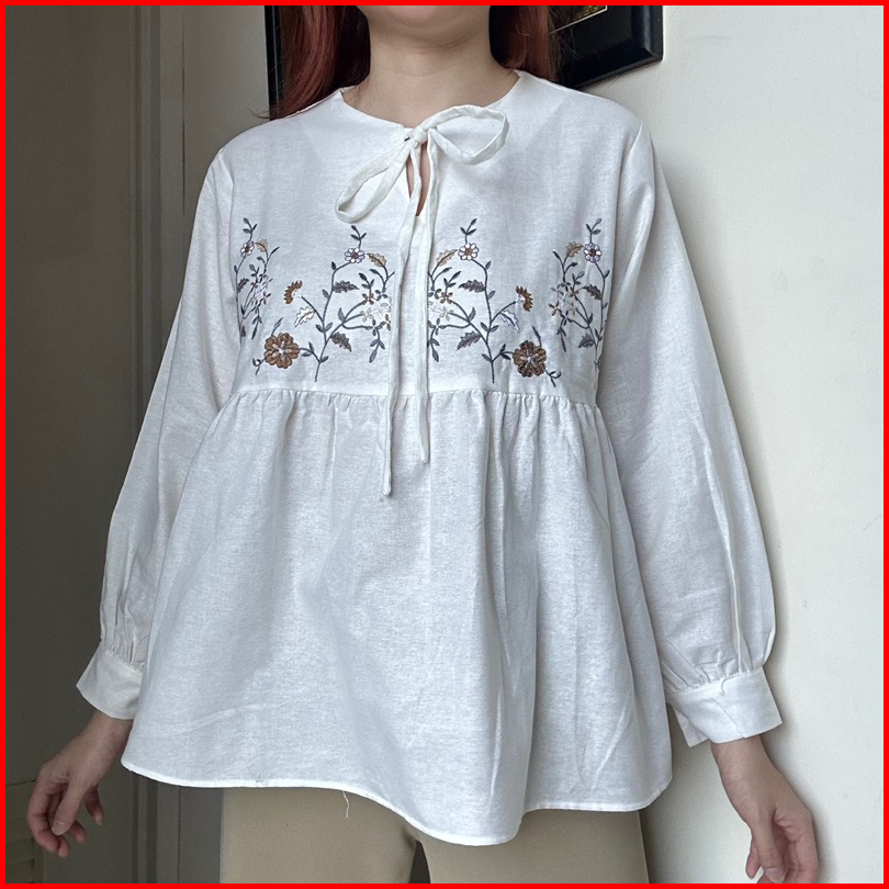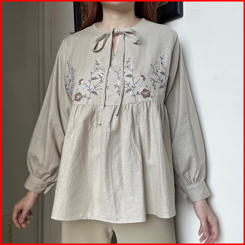 Milea Top Atasan Blouse Kemeja Kerja Linen Bordir Wanita By Biel The Label