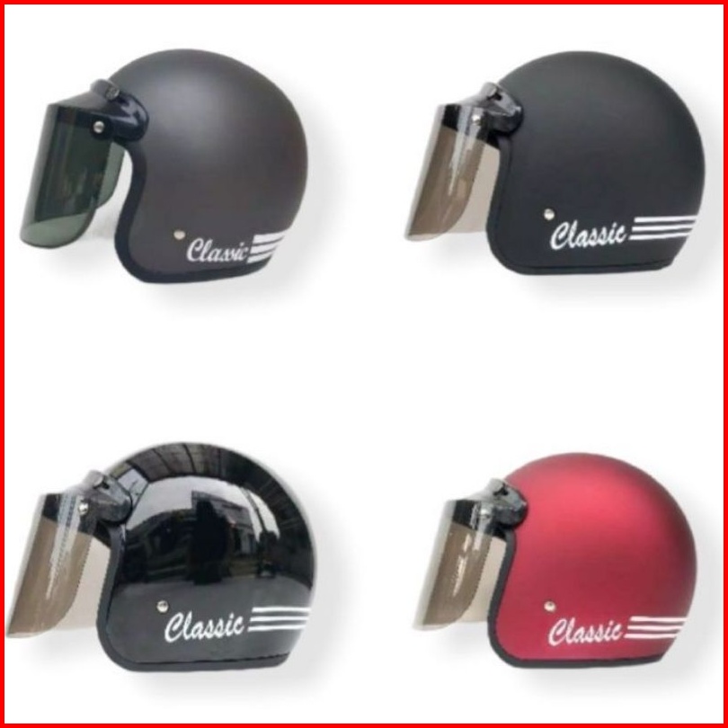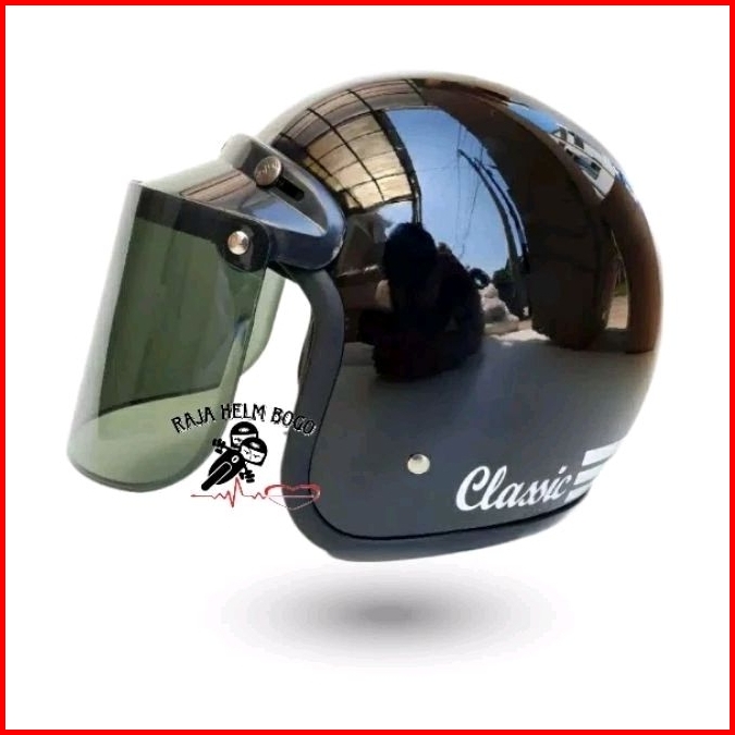 Helm Bogo Dewasa Clasik Tiga Garis Kaca Free Packing Dan Pengaman