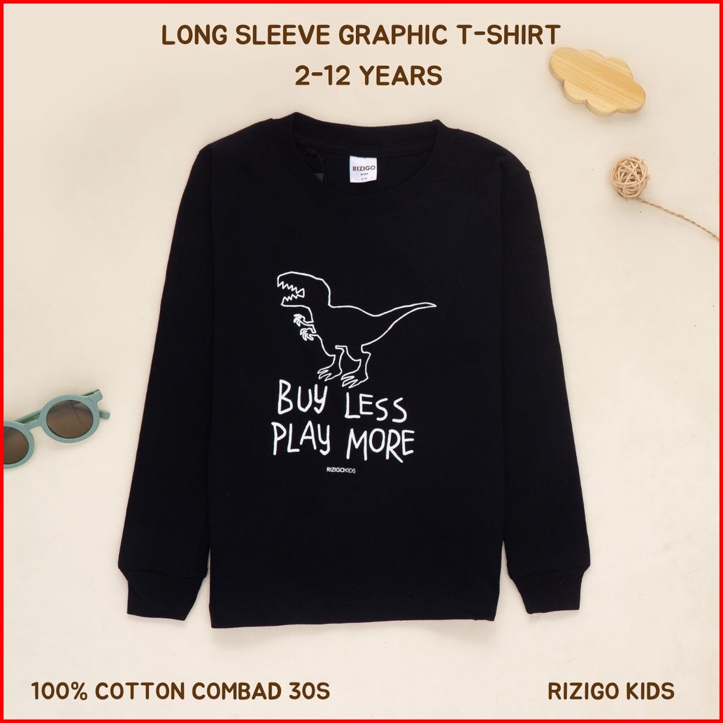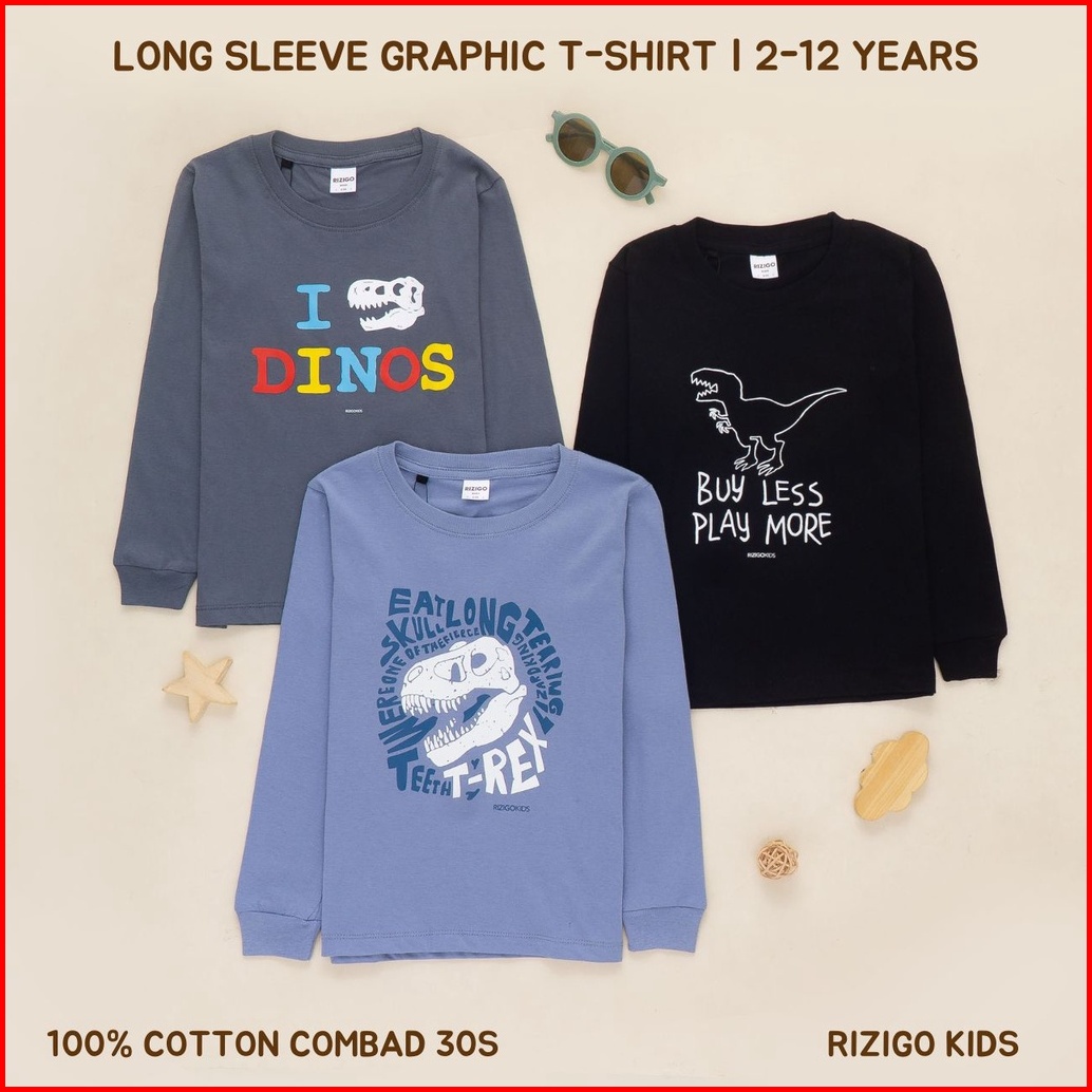 Rizigo Kids Kaos Lengan Panjang Anak Series Dino Play Less 2-12 Tahun - Baju Panjang Anak Laki