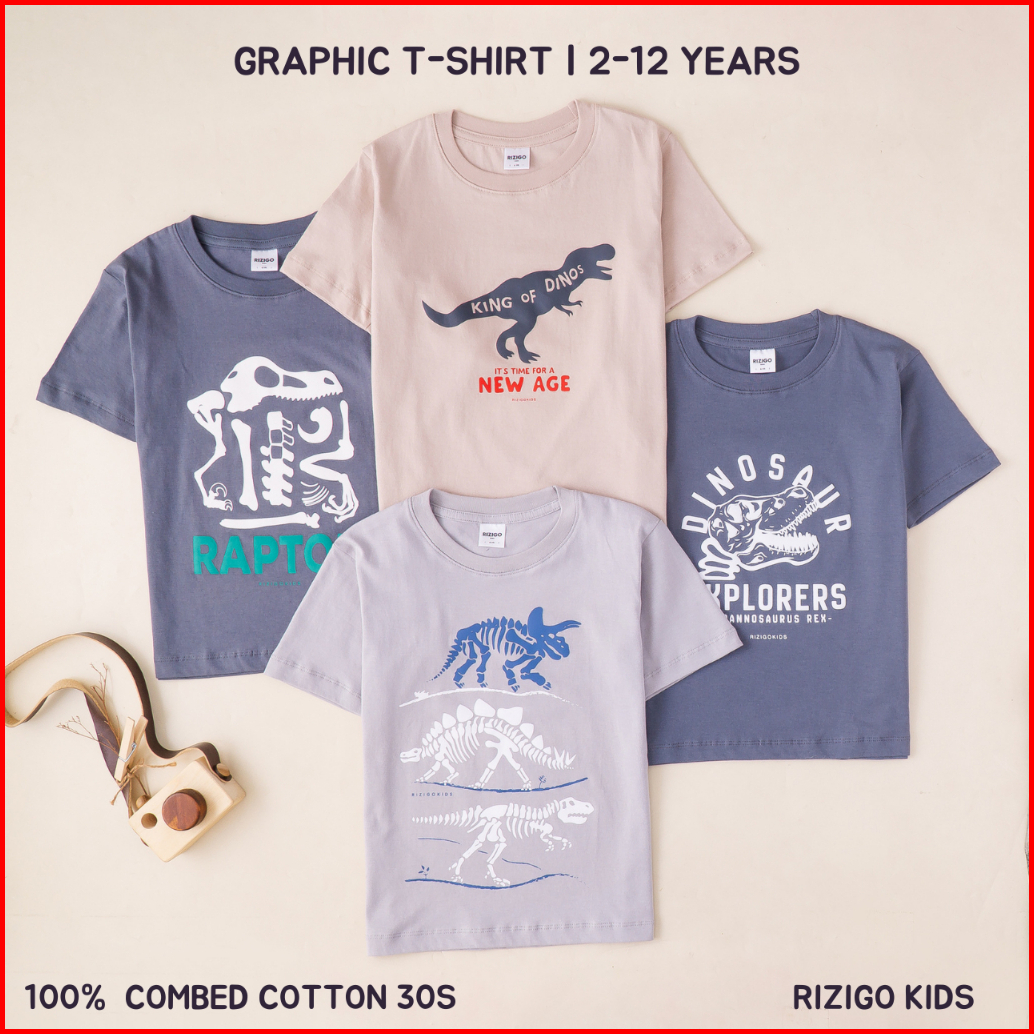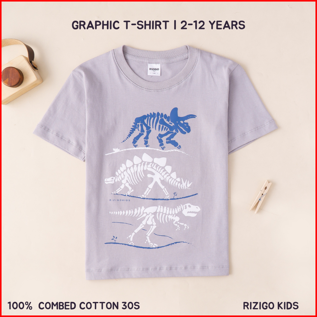 Rizigo Kids Kaos Anak Series Dino Trio Bones 2-12 Tahun - Baju Anak Laki - Atasan Anak