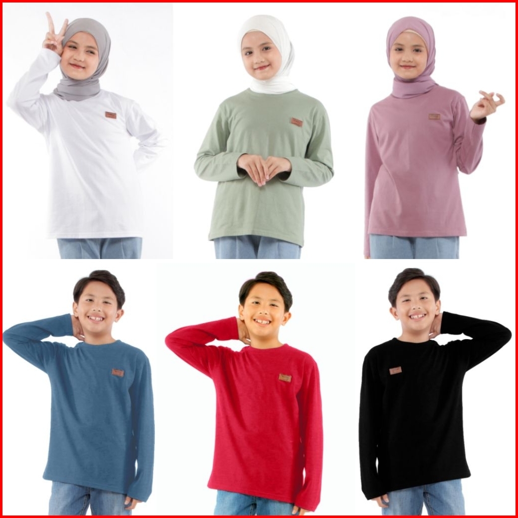 Baju Atasan Blouse Kaos Polos Lengan Panjang Basic Anak Unisex Usia 4 Sampai 14 Tahun