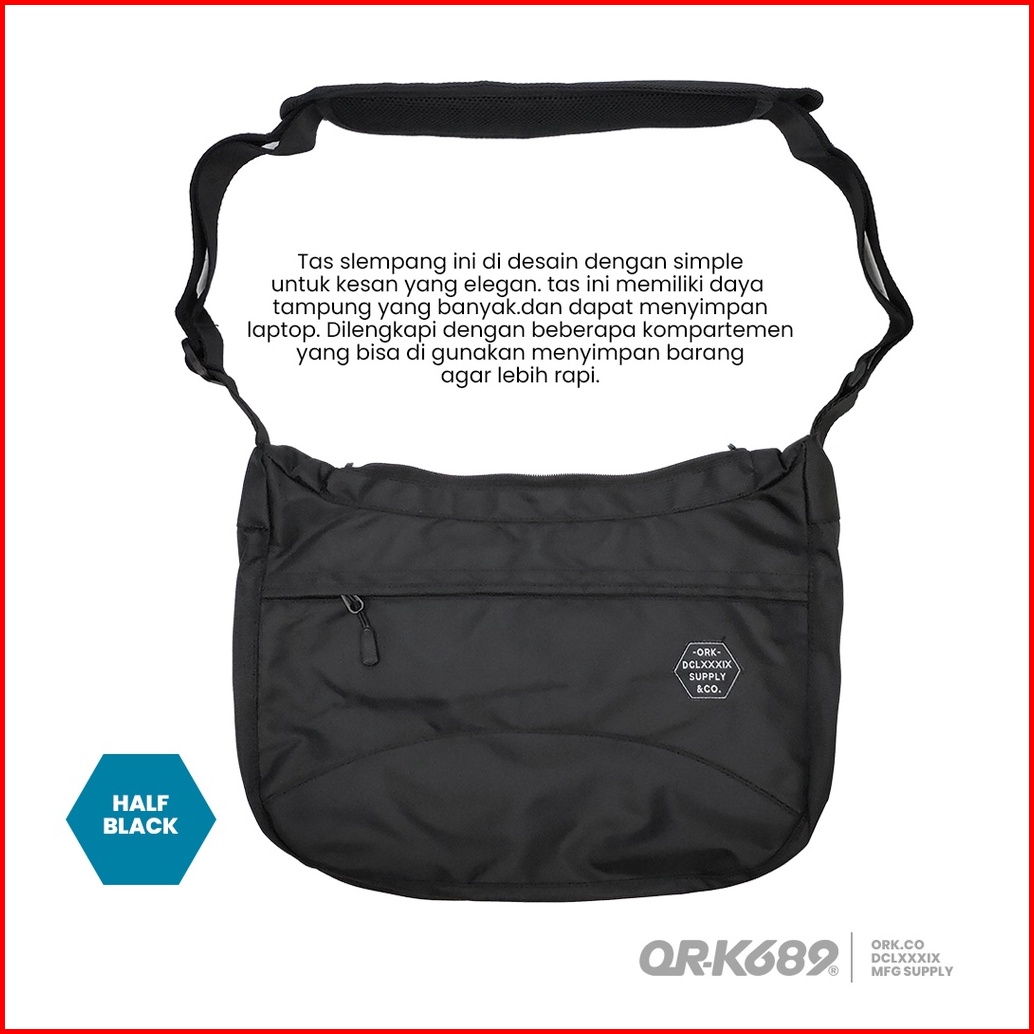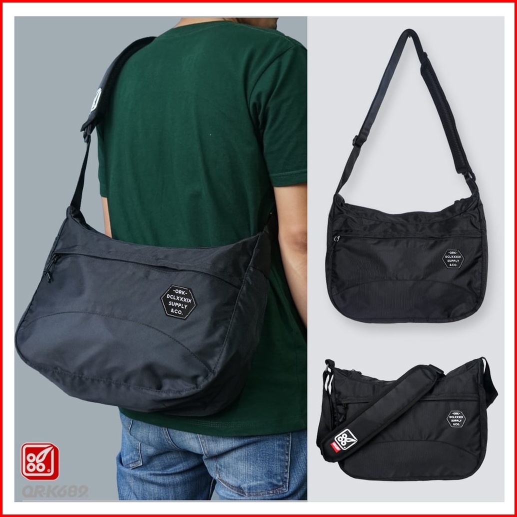 Tas Selempang Pria Distro Waterproof Slempang Laki Laki Sling Bag Cowok Ork689 Half Black