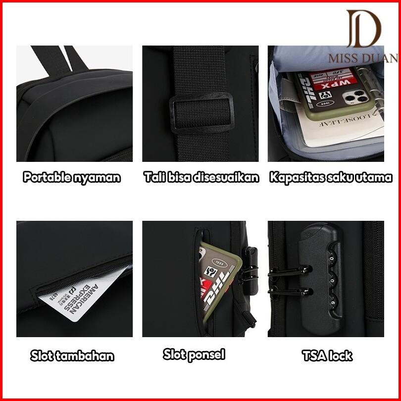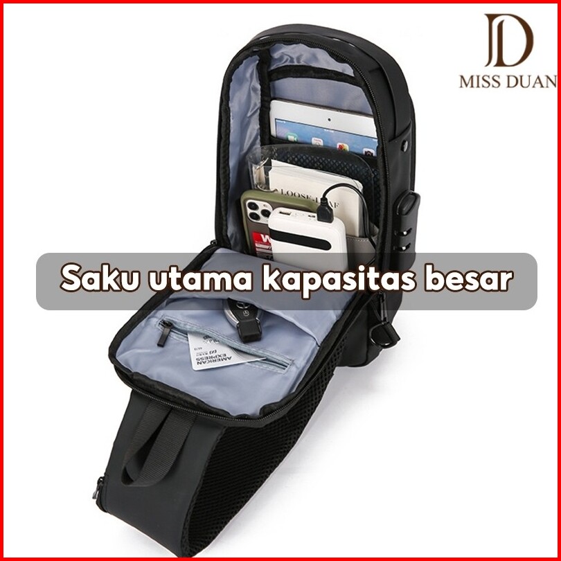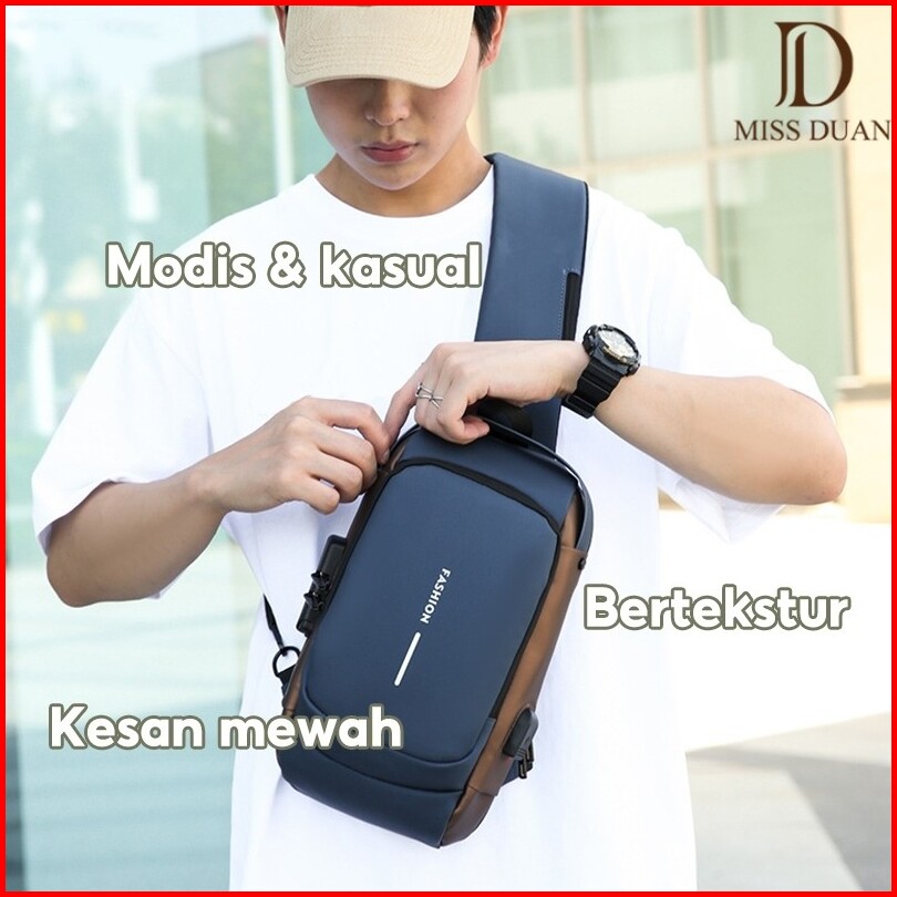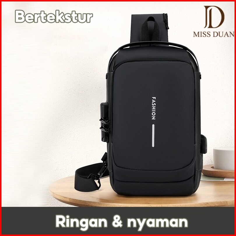 Miss Duan Shoulder Bag Tas Pinggang Tas Selempang Usb Charger Port Pria Wanita Unisex