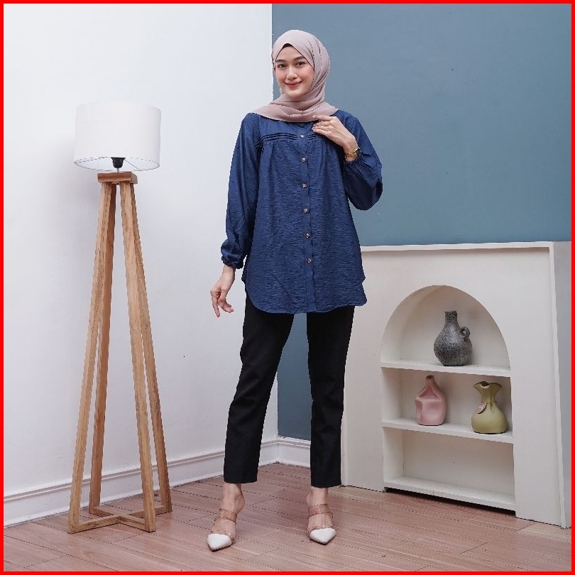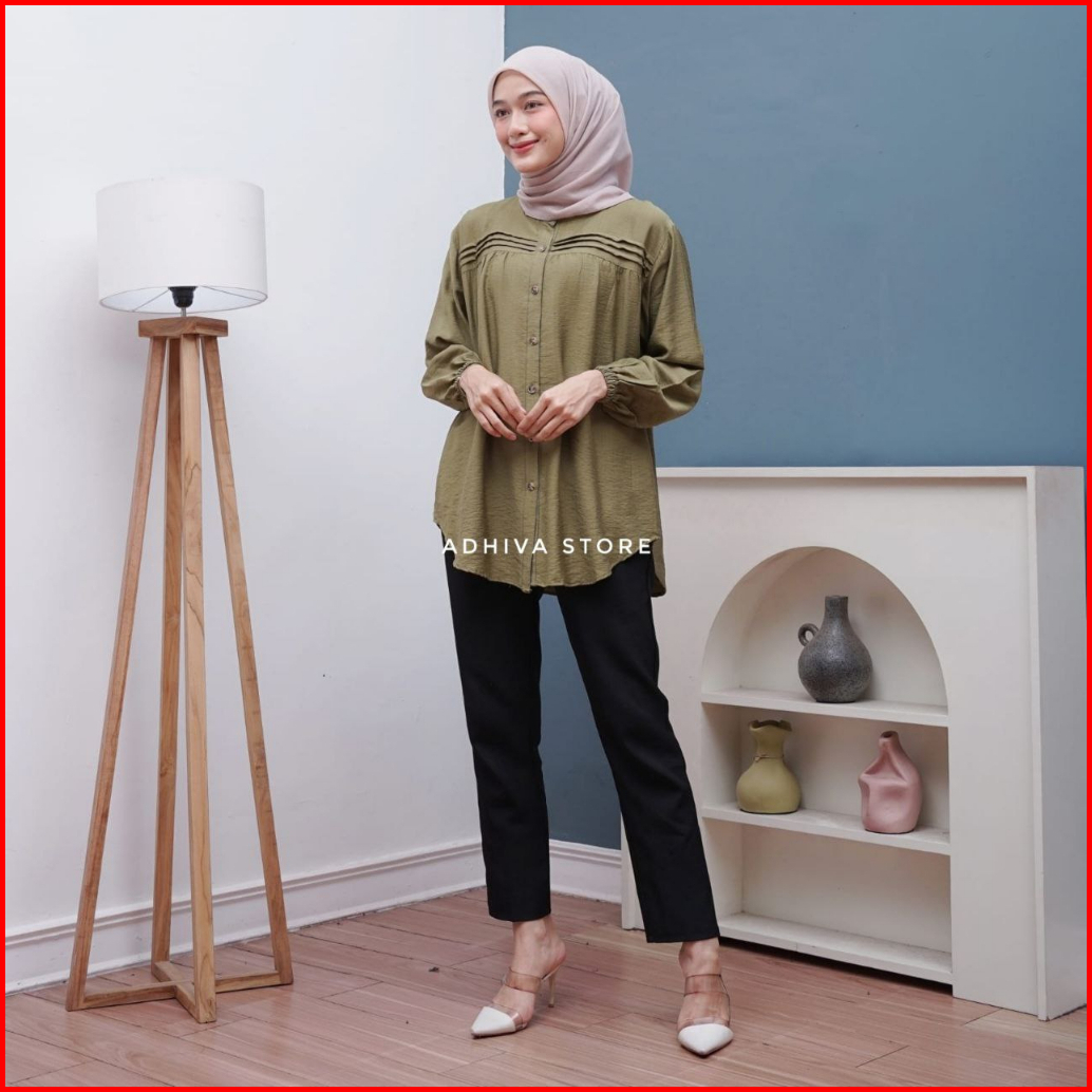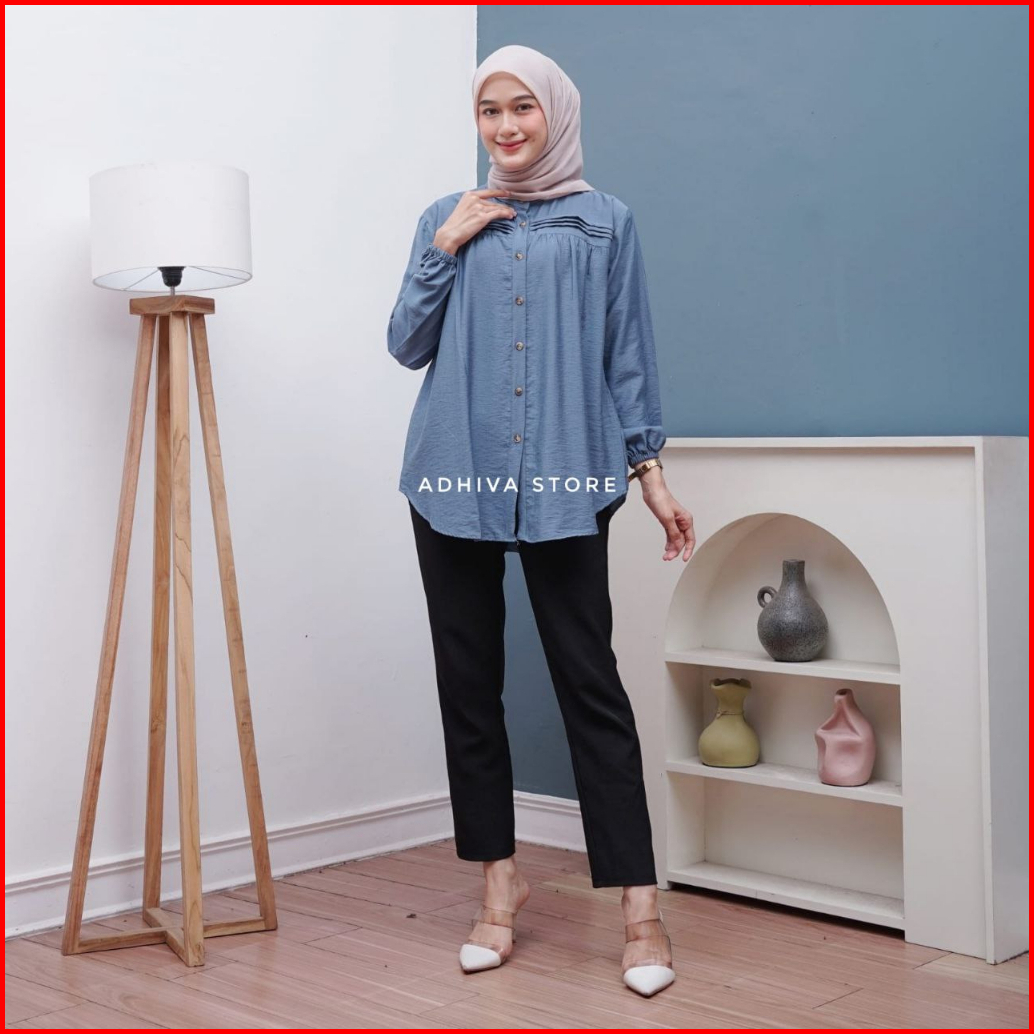 Luna Blouse Kemeja Wanita Polos Polo Linen Kekinian Pakain Wanita Blouse Adhiva Store