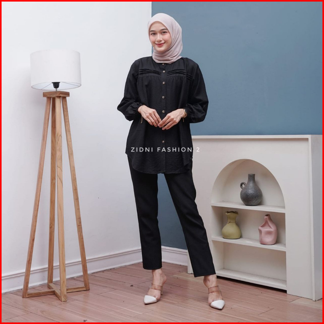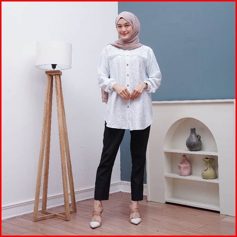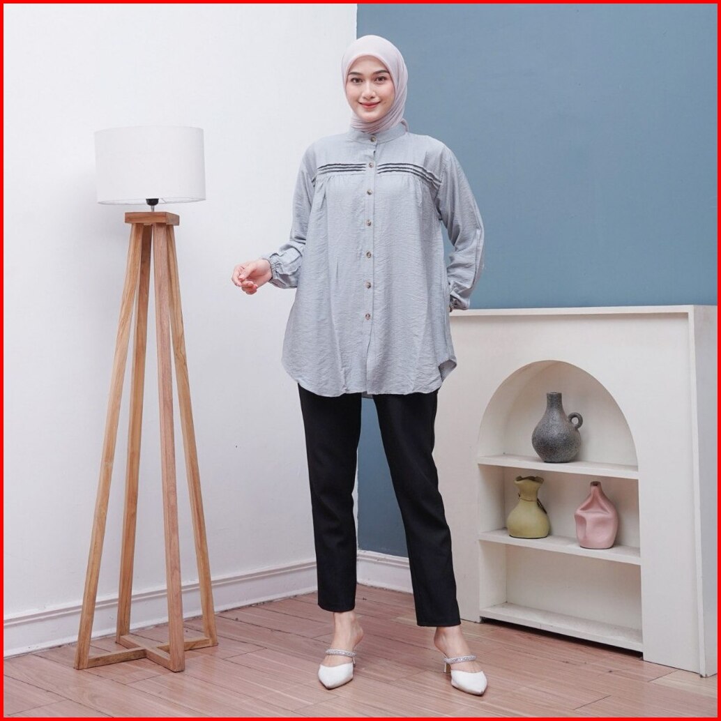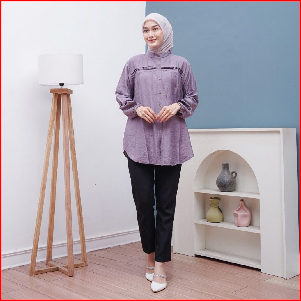 Luna Blouse Kemeja Wanita Polos Polo Linen Kekinian Pakain Wanita Blouse Adhiva Store