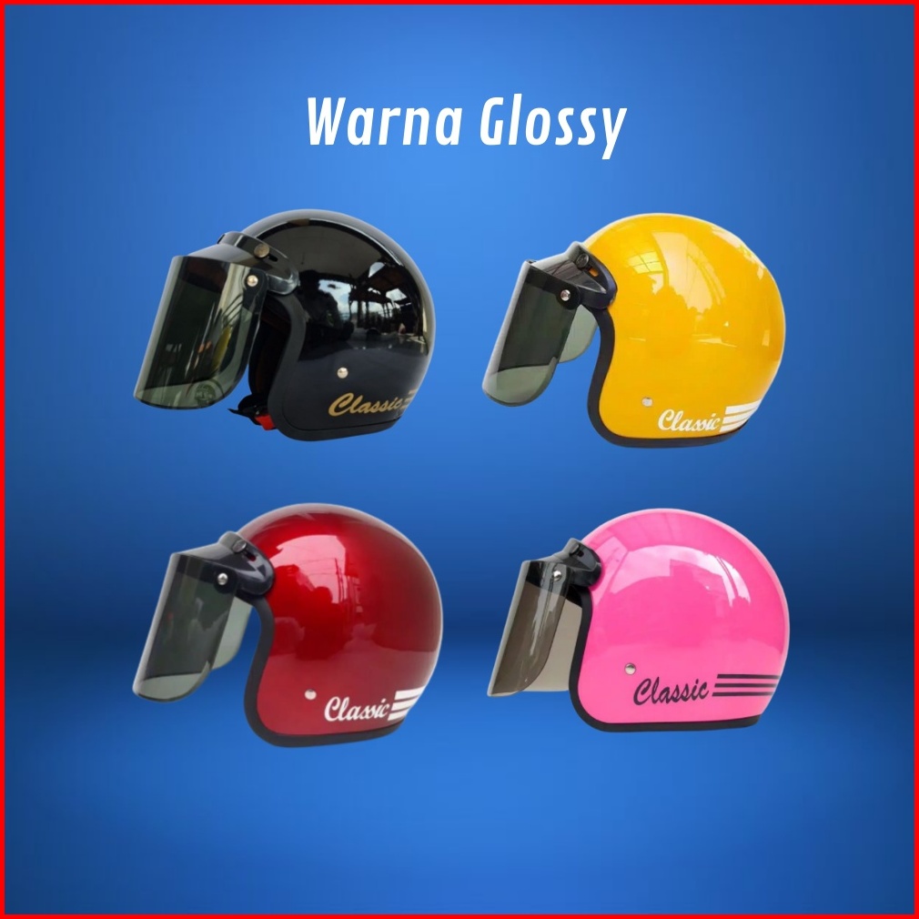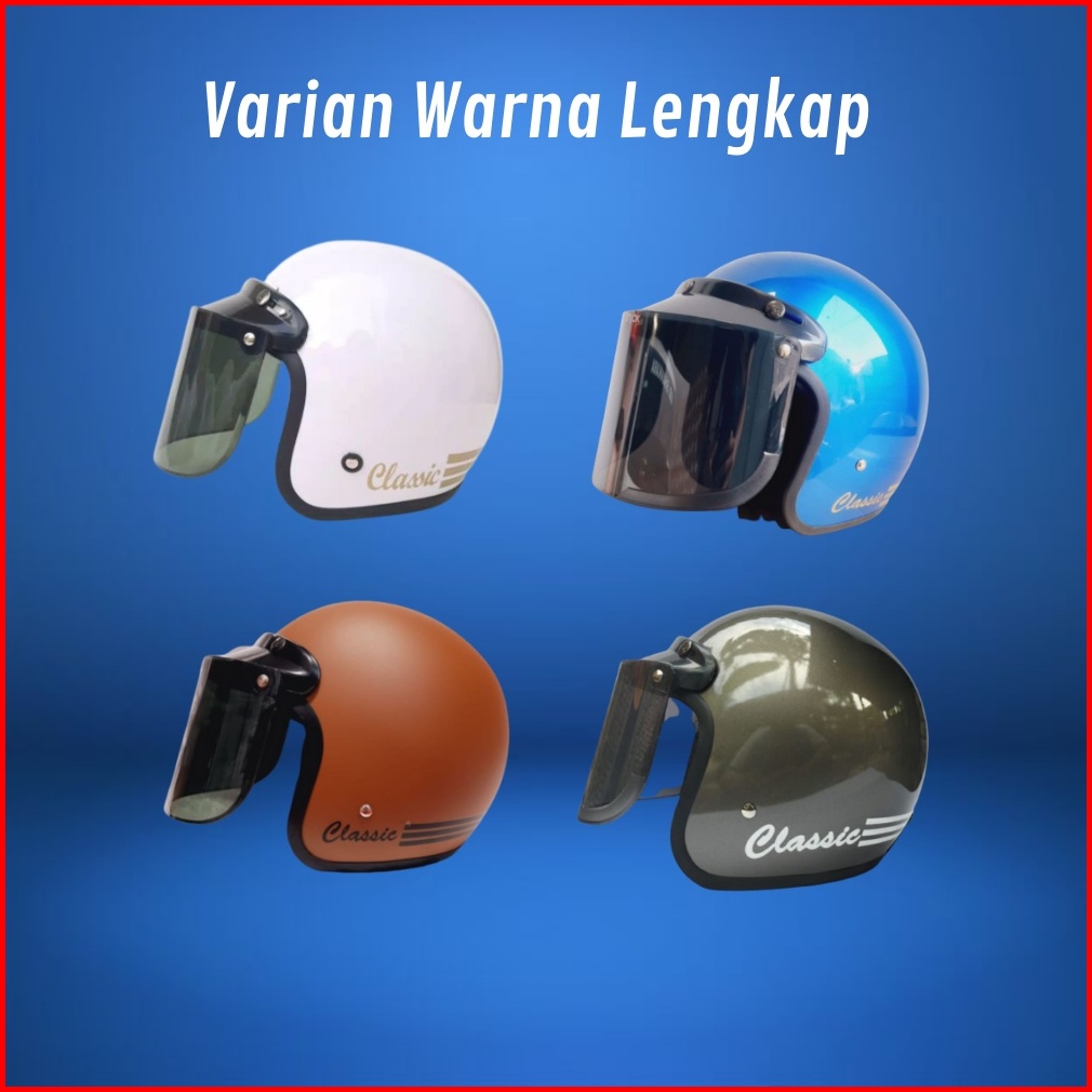 Promo Termurah Helm Bogo Dewasa Kaca Datar Cembung Kualitas Sni Model Retro Classic Klasik