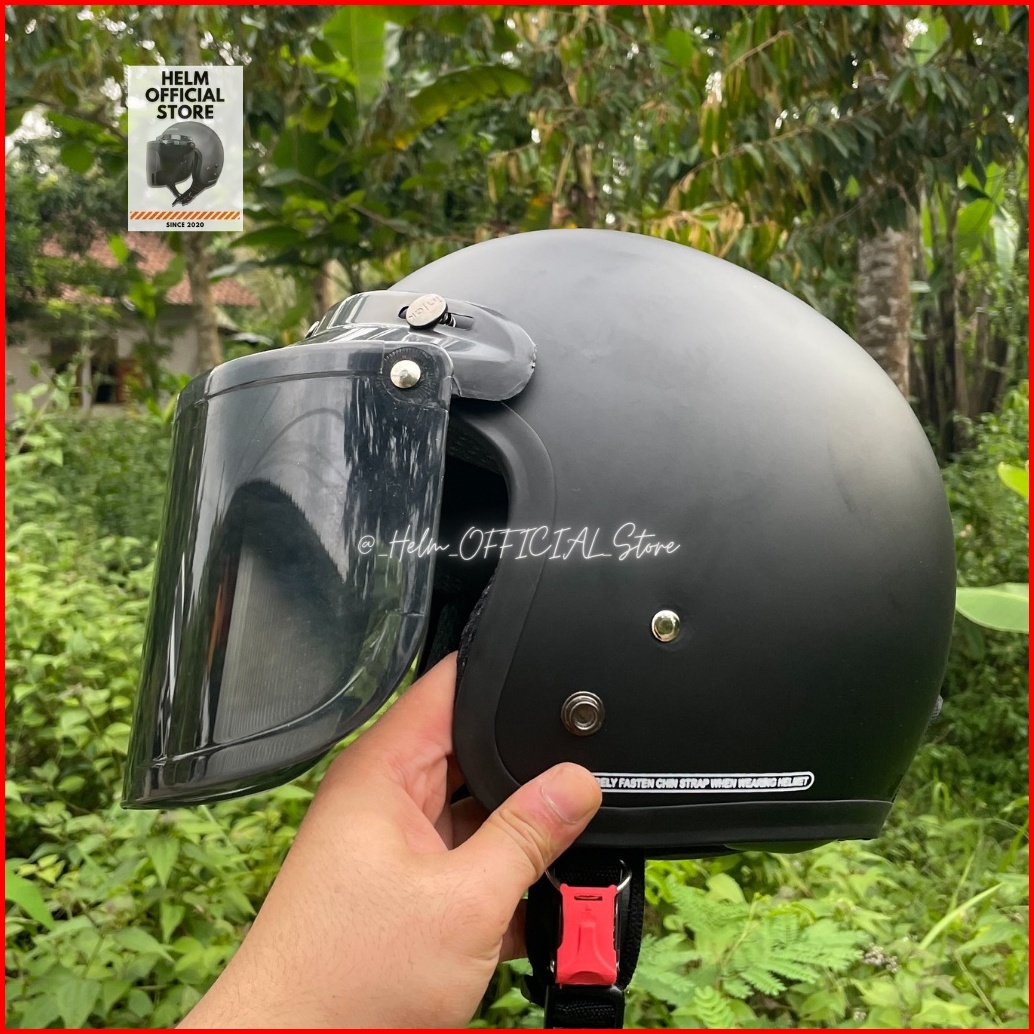 Helm Bogo Dewasa Model Retro Kaca Datar Full Leher Sni